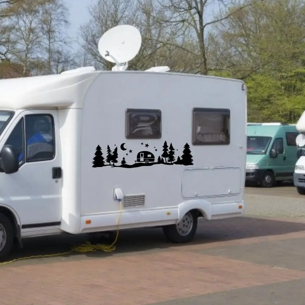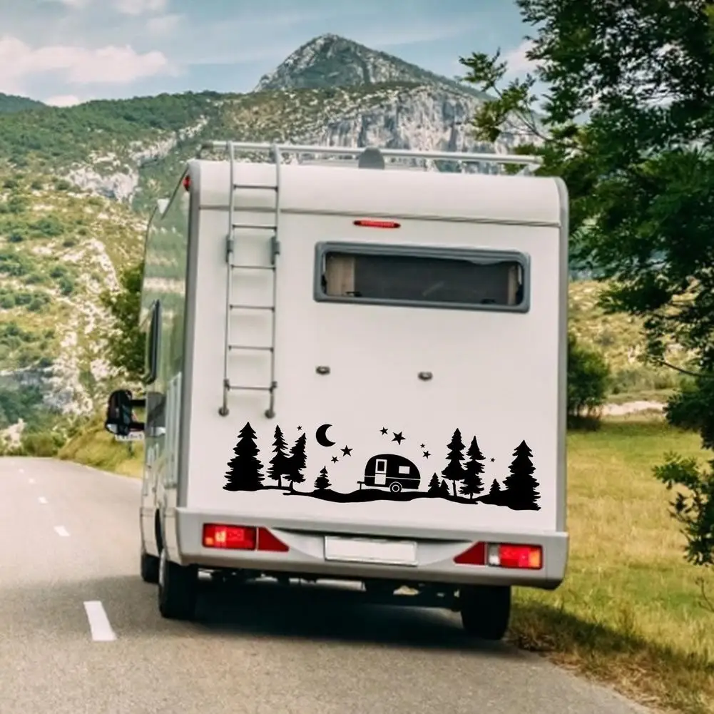 84x22 см Camper RV Звездный лес горный Автомобиль Стайлинг стикер путешествия Кемпинг Звезда Луна Дерево наклейка для дома на колесах виниловый автомобиль домашний декор