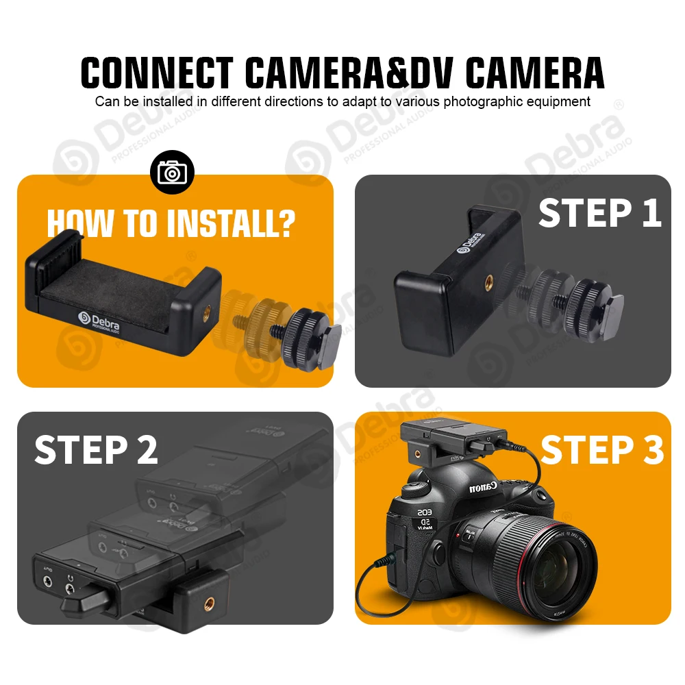 Приемник с интерфейсом 3,5 мм, с кабелем 3,5 мм, может использоваться с ноутбуком/ПК/DSLR камерой/усилителем/DV/видеокамерой/смартфоном/микшером и т. д.