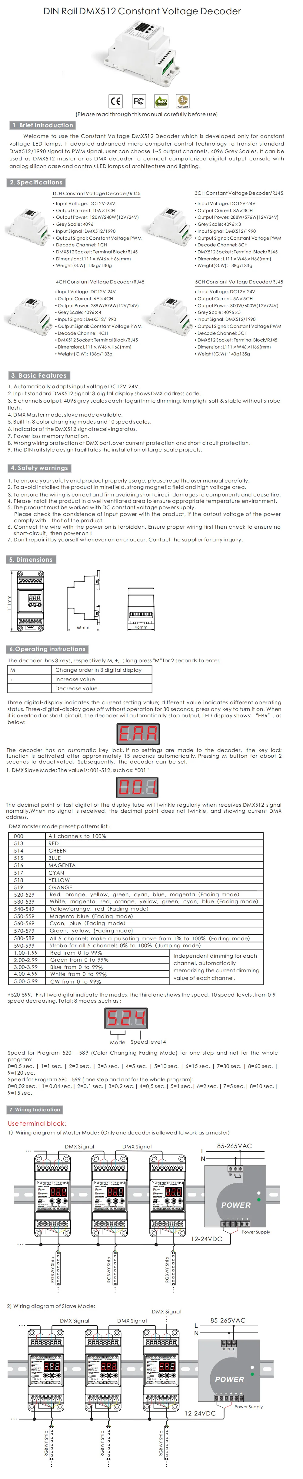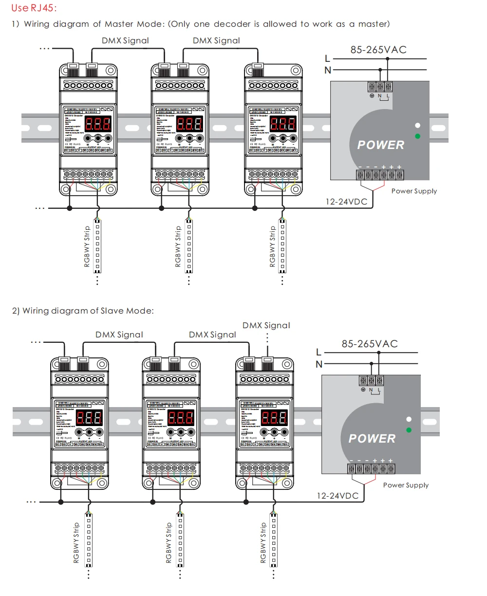 5CH RJ45 означает DMX iniput является RJ45 порт, 5 канал зеленого цвета выходной терминал.