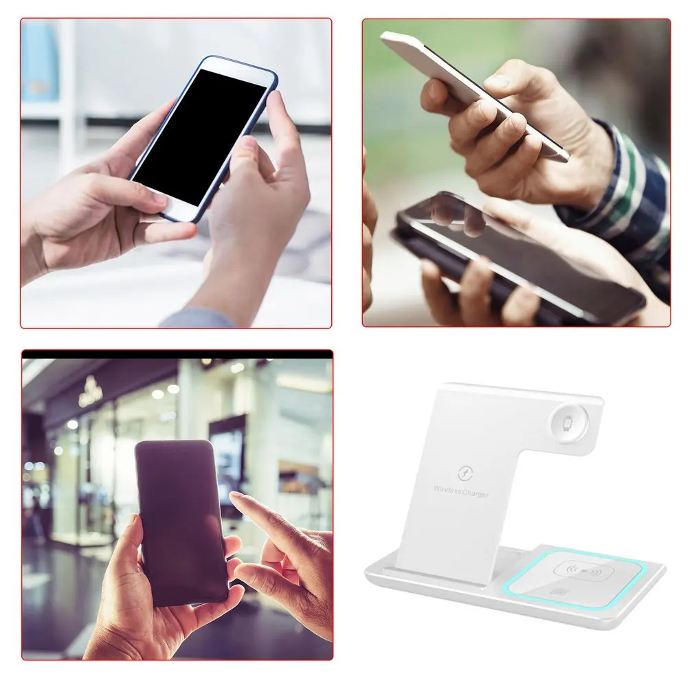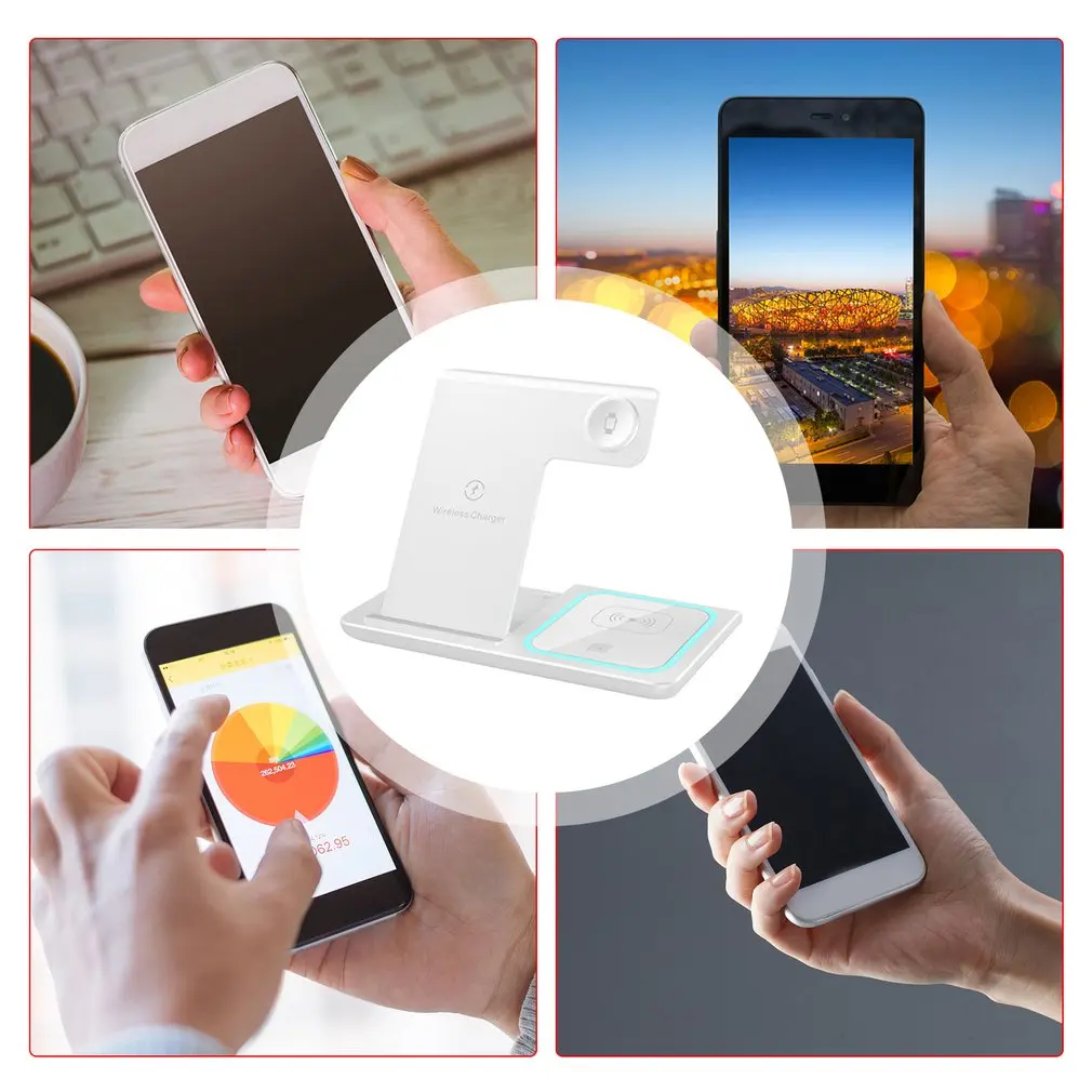 Особенности: 1. Простота в эксплуатации: положите продукт вниз и он будет заряжать индуктивно, и включите беспроводную жизнь, чтобы сделать зарядку проще и быстрее. 2. Автоматическое распознавание: Поддержка функции обнаружения инородного тела. Не помещайте монеты, ключи, кредитные карты или другие металлические изделия в зону зарядки устройства. 3. Конструкция кронштейна: Этот продукт является не только беспроводным зарядным устройством, но и держателем на мобильный телефон, что обеспечивает больше удобства в использовании мобильных телефонов при зарядке. Описание: Это зарядное устройство подходит для беспроводной зарядки мобильных телефонов/для Apple Watch/беспроводных наушников и других устройств, оснащенных ночными огнями, беспроводной быстрой зарядкой 15 Вт. Характеристики: Материал: экологически чистый пластик + акриловые линзы Интерфейс: Type-C Входной ток: 5V-3A, 9V-2A, 12V-1.5A Беспроводной Выходная мощность: 15 Вт/10 Вт/7,5 Вт/5 Вт Требования к адаптеру: ≥ 9V-2A Совместимость: поддержка стандартных мобильных телефонов QI, для Apple Watch, беспроводных гарнитур Размер изделия: 165*141,3*13 мм Посылка включает в себя: 1 шт. * зарядное устройство