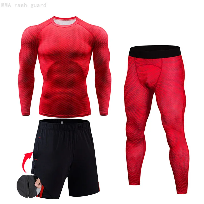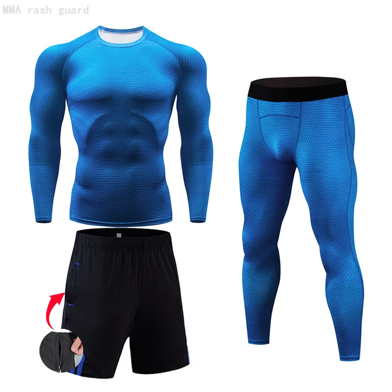 Мужское Спортивное нижнее белье, колготки, 3 предмета, футболка для бега, леггинсы, шорты, быстросохнущая Спортивная одежда для фитнеса, компрессионная спортивная одежда