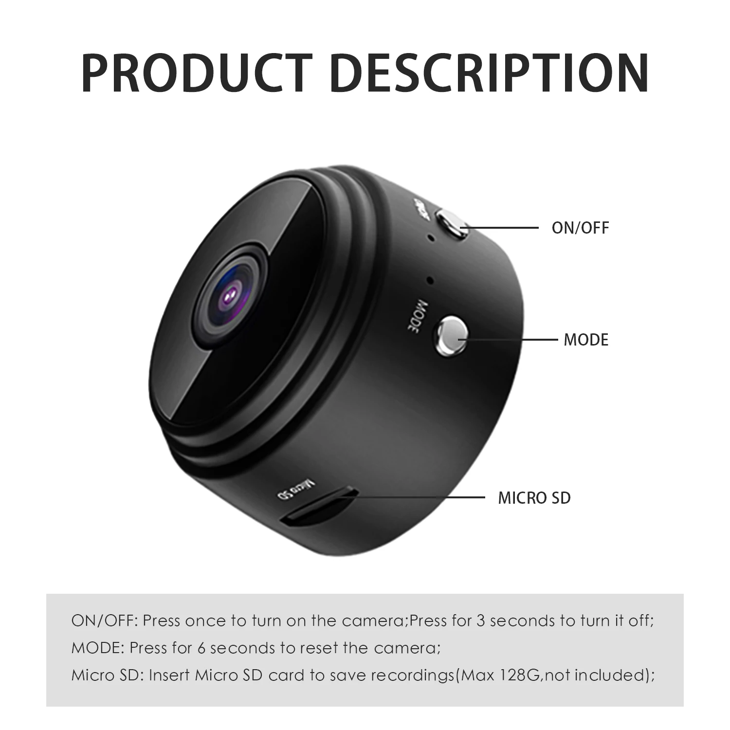 Micro sd; Вставьте карту micro sd для сохранения записи (макс. 128 г, не входит в комплект)