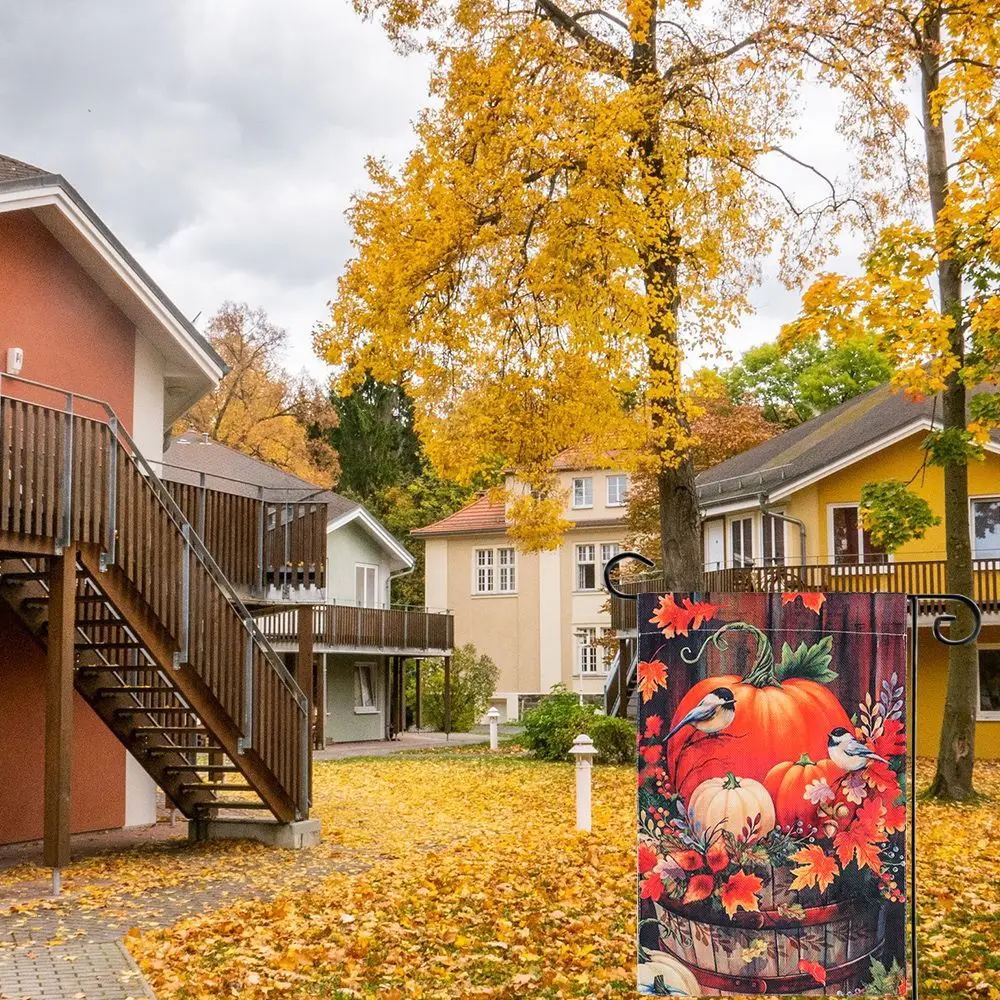 1. Premium Material: Durable outdoor fall garden flag is made of machine washable polyester burlap material, double stitching panels on multiple rows and high quality sleeve to provide lasting strength and are UV, fade resistant to keep them flying for many seasons.