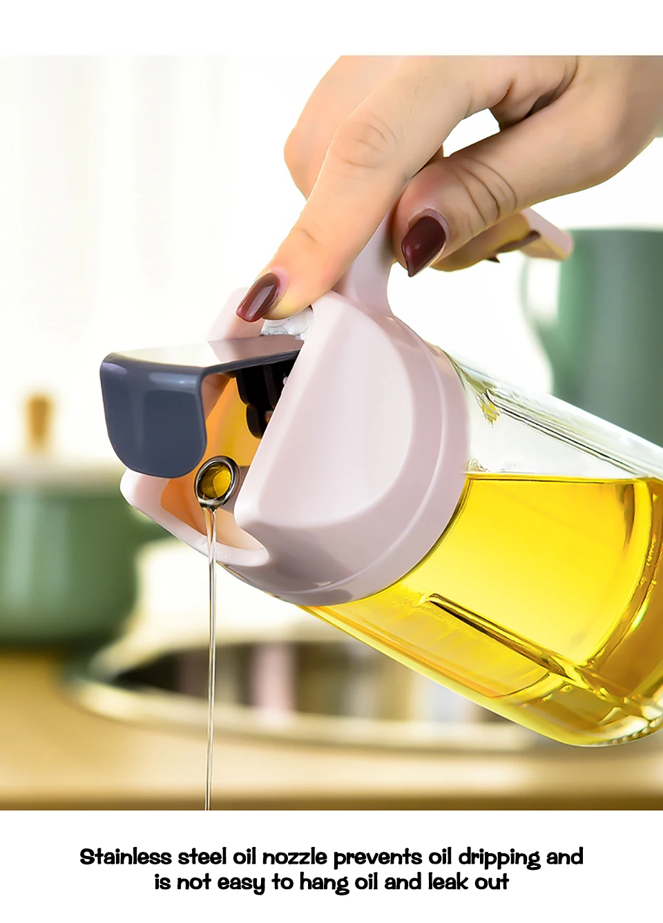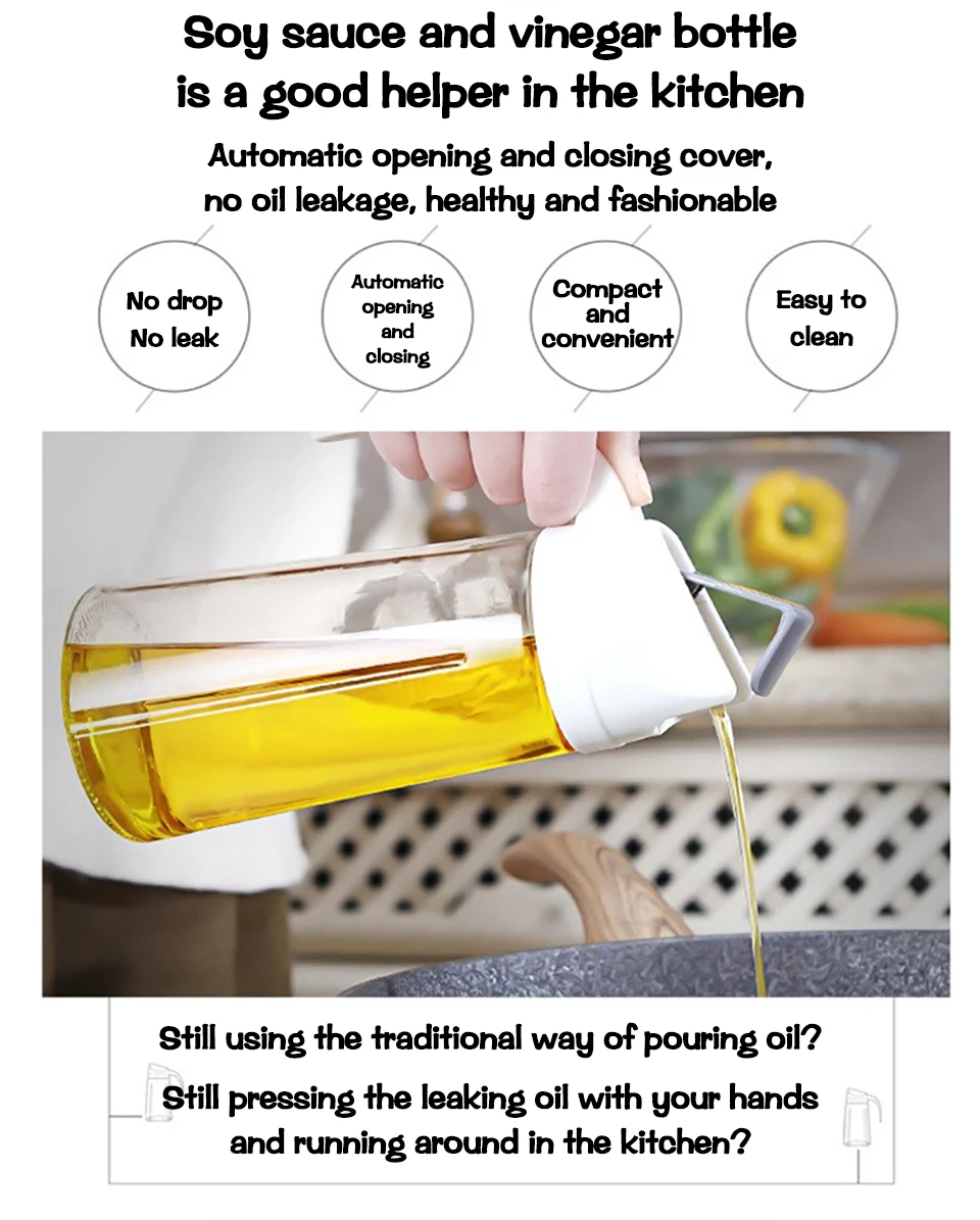 Эта бутылка для масла изготовлена из высококачественных материалов и используется для длительного использования. Это незаменимый инструмент на кухне. Можно добавить любой жидкий ароматизатор. Эта бутылка для масла большой вместимости подходит для масла, оливкового масла, уксуса, соевого соуса, бальзамического уксуса и т. д. вам действительно стоит купить!