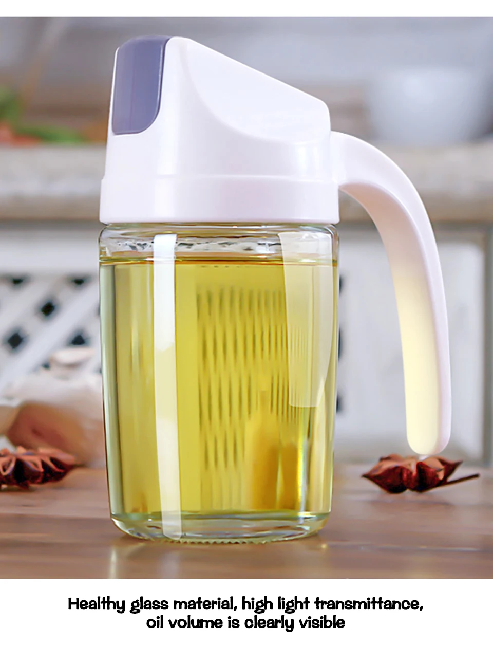 -Большая емкость для хранения, корпус калибровочной бутылки, контроль масла, вкусная еда.