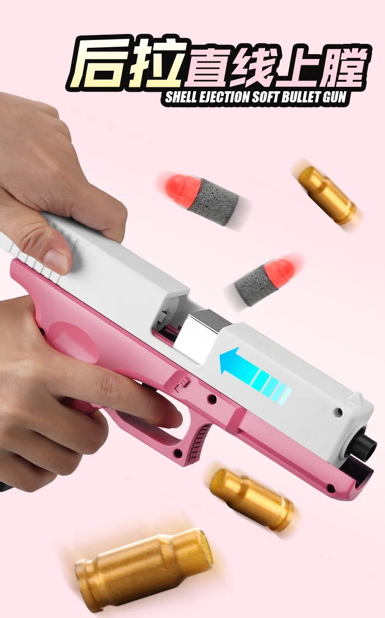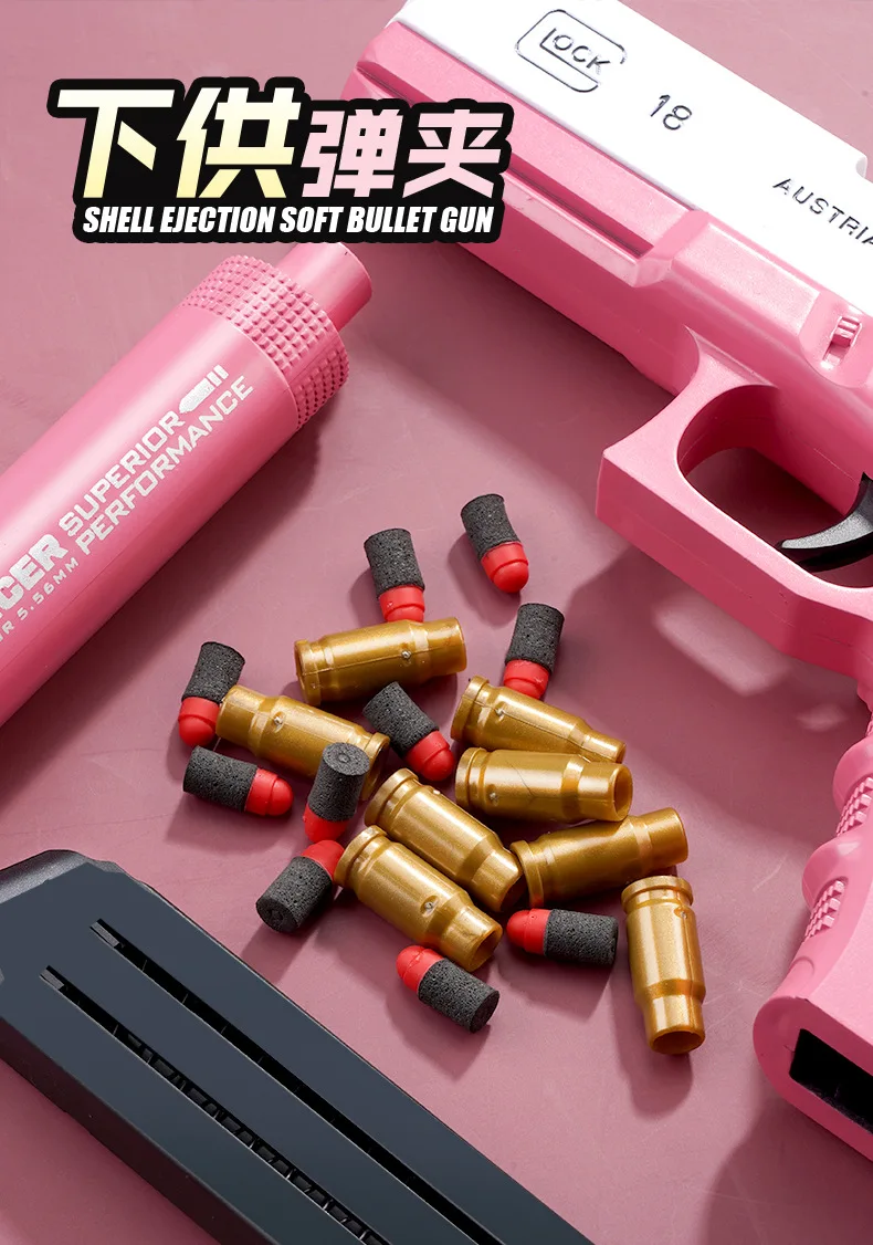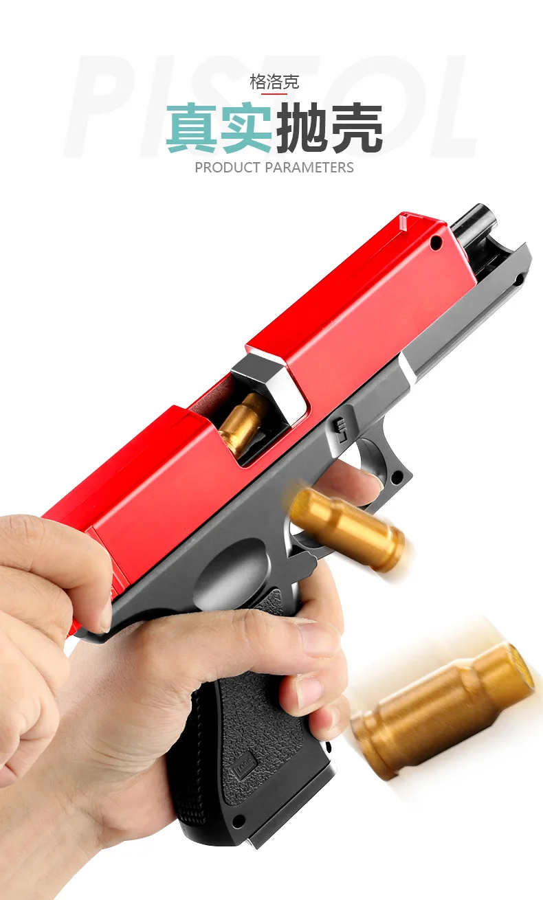 1. Игрушечный пистолет изготовлен из высококачественного АБС-пластика, анти-шок и прочный.
