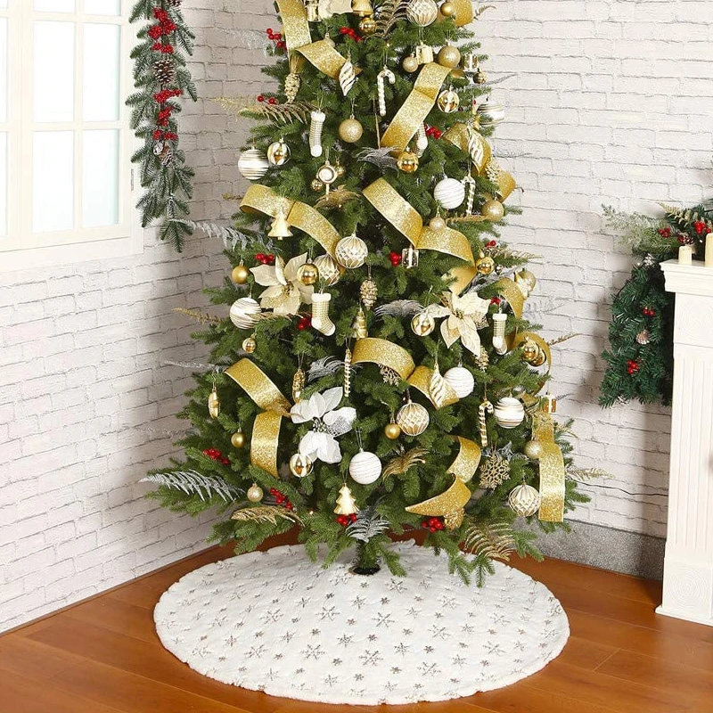 1. The tree skirt is made of smooth and fluffy faux fur material, there are four options of 78/90/120/140cm, perfect for any size trees. Its well-constructed faux fur makes the quality of the tree skirt better and gives you a comfortable feeling.