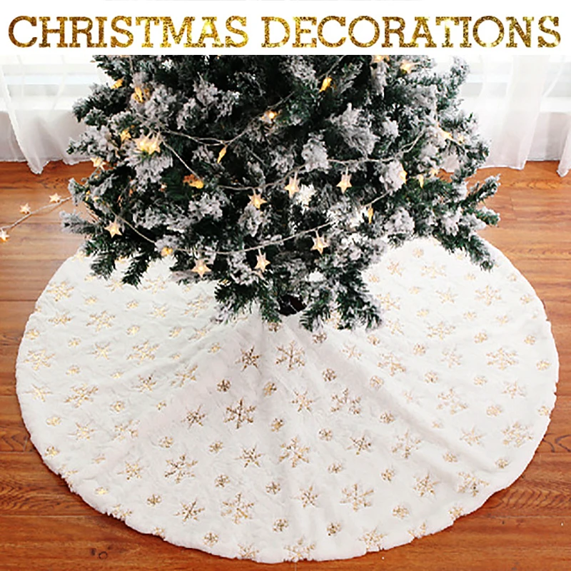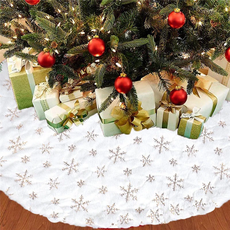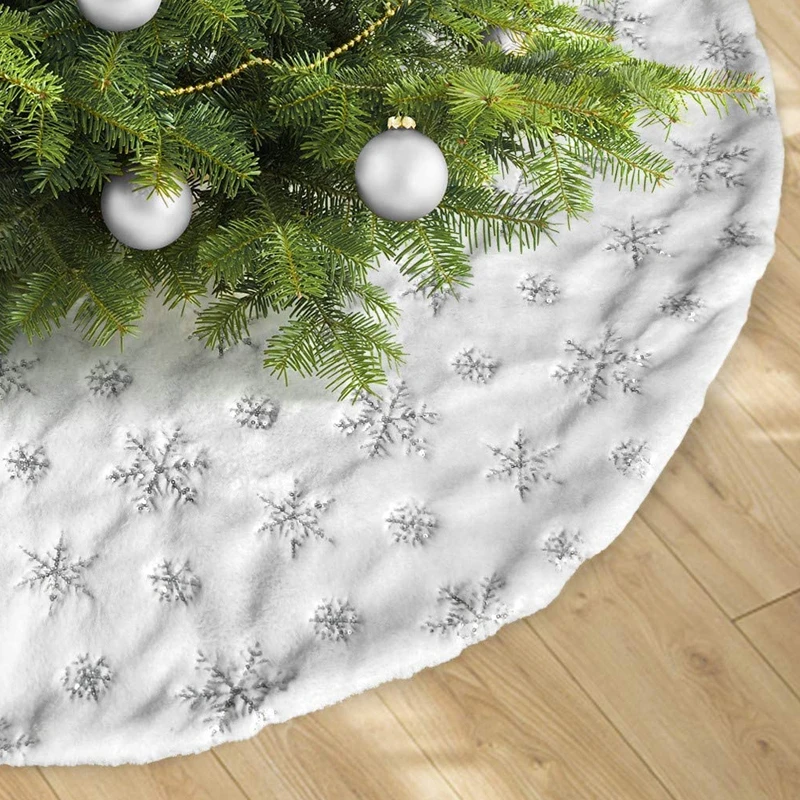 2. Gold/Sliver/Multicolor shining snowflake Christmas tree skirt adds more festive atmosphere to your home. You can put some decorations or ornaments on the tree skirt for more holiday decoration. Reusable and will never be outdated.