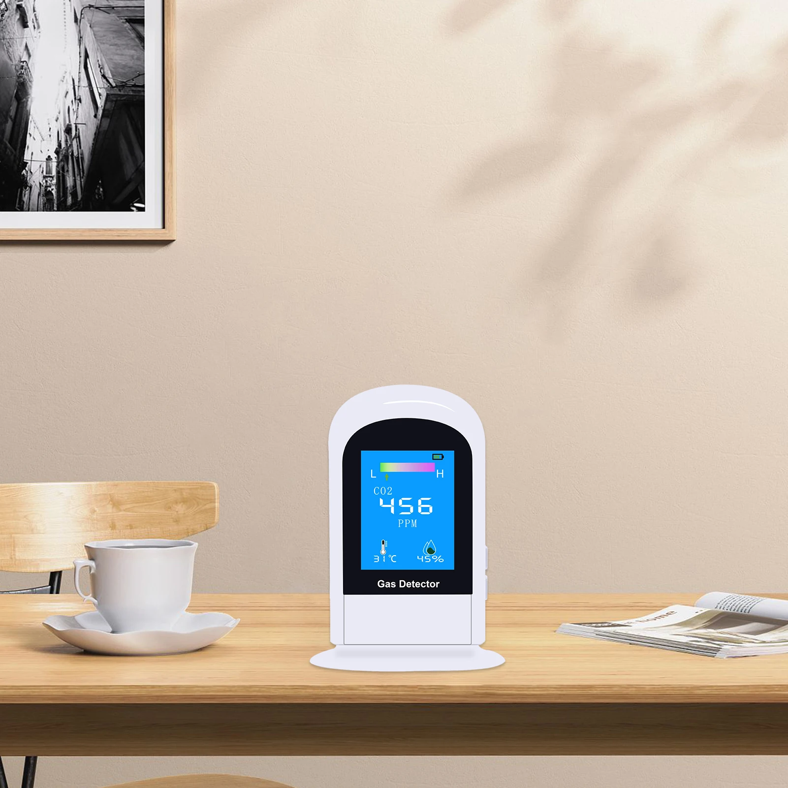 Монитор качества воздуха: тестер углекислого газа может обнаруживать концентрацию углекислого газа в воздухе, его можно широко использовать в домашних условиях, классе, гостиничном зале, квартире, офисе, тренажерном зале и т. д.