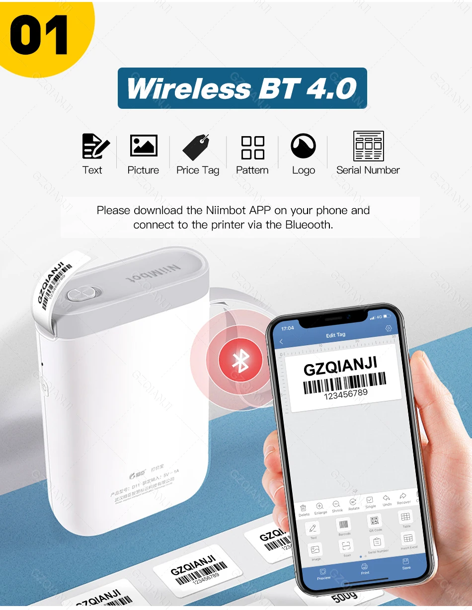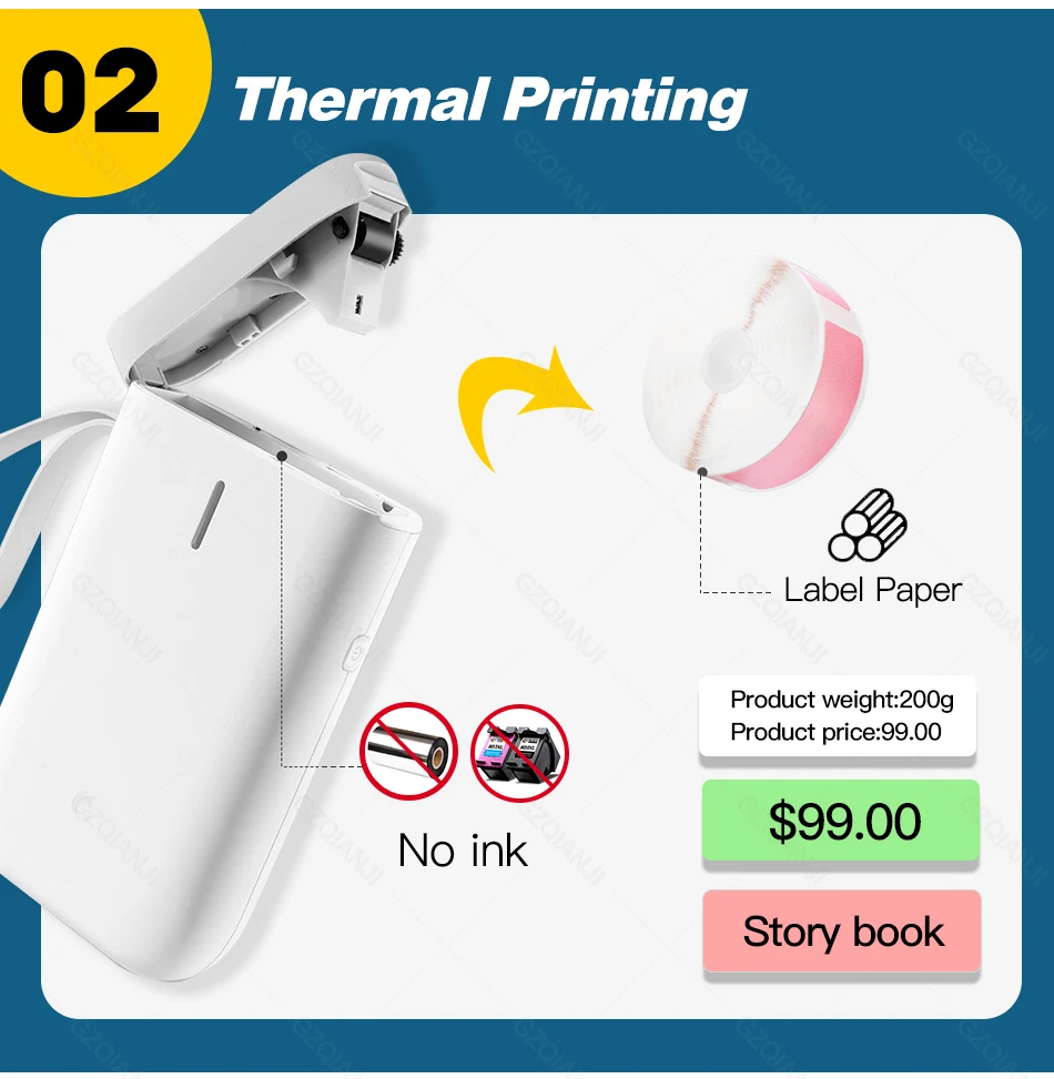 Беспроводной дизайн, поддерживает печать на большие расстояния.