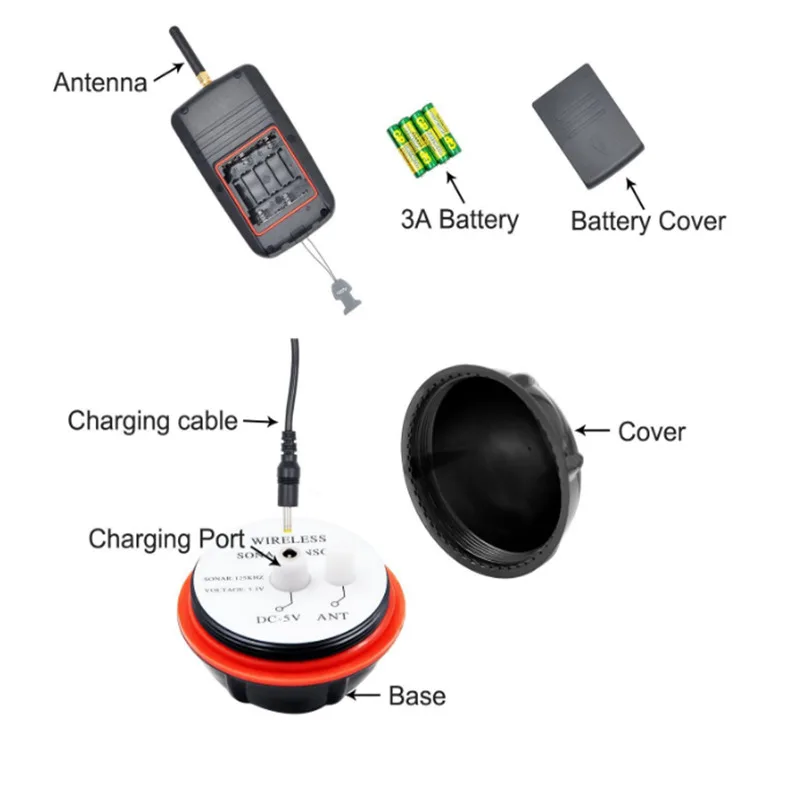 В датчике сонара есть два небольших отверстия (Сферический детектор), с помощью нити два отверстия можно привязать к лодке-приманке с дистанционным управлением или ночному стационарному поплавковому режиму или использовать для вращения.