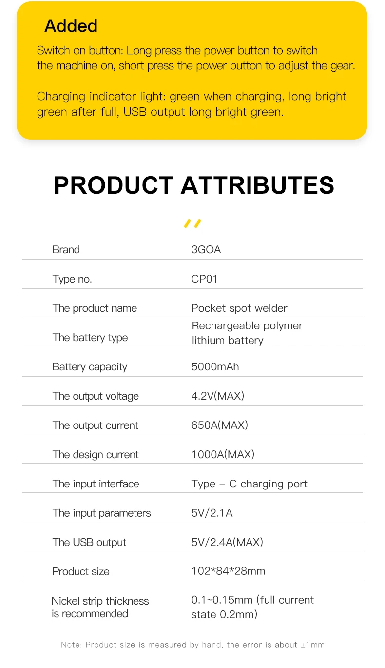 Конфигурация: Хост + точечная сварочная ручка (40 см) + Лист никеля 2 м
