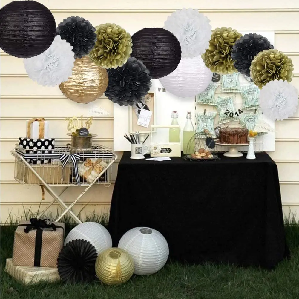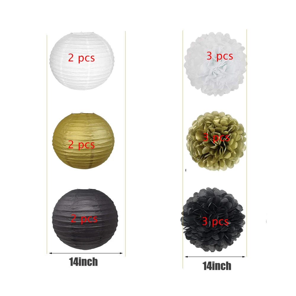 15 шт. большой черно-золотой белый тканевый бумажный помпон и бумажный шар-фонарь для свадьбы, вечеринки на Рождество, домашний декор