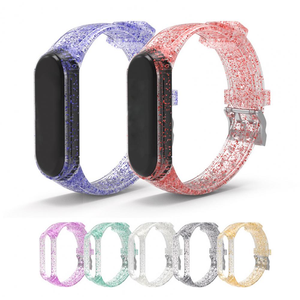 Ремешок для часов с блестками и двойной пряжкой, сменный смарт-браслет, силиконовый ремешок, браслет для Xiaomi Mi Band 5/6/NFC
