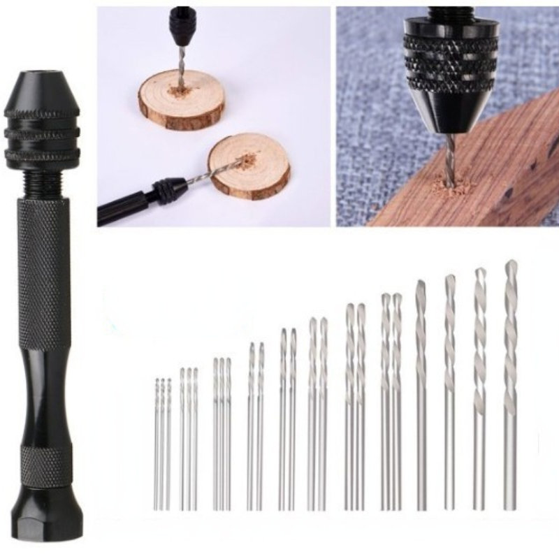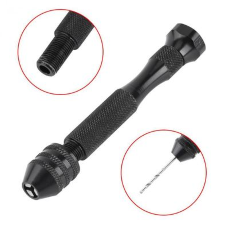 The length of the drill body is about 9 cm, and the diameter of the hand drive is about 1.5 cm,The drill chuck is made of steel and the body is made of aluminum alloy, which is firm and lightweight.