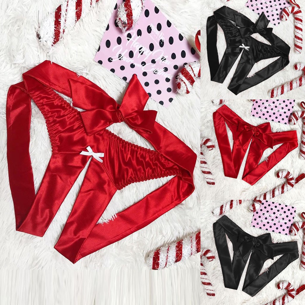 Женские атласные шелковые трусы с бантом, стринги, нижнее белье без косточек, одежда для сна