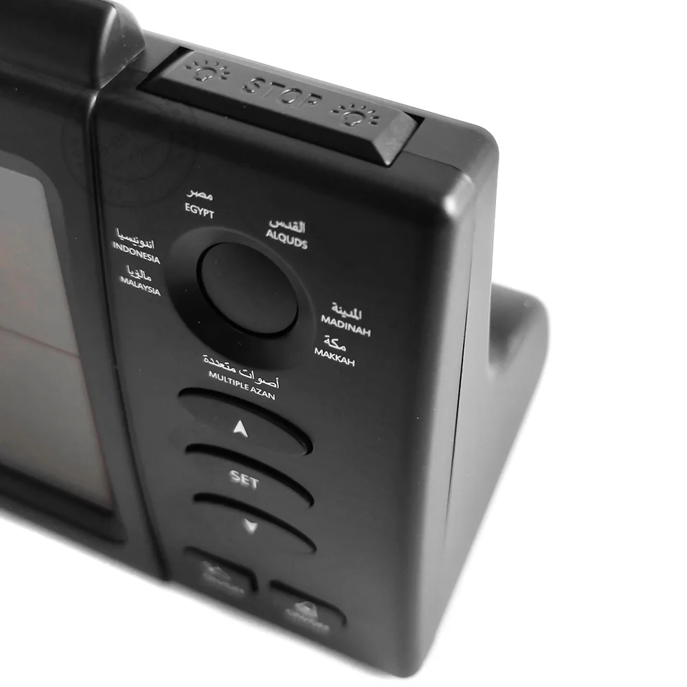 Характеристика:Полный azan для всех молитв (с регулятором громкости)Время молитвы для большинства городов по всему мируНаправление Qibla (по отношению к северу)Хиджри и григорианские календари* Полный азан для всех молитвХарактеризуется AL-HARAMEEN часами с высоким качеством звука Azan для всех молитв с регулятором громкости azan, установленным на всех моделях часов. * Девять систем taqweem запрограммированы в часахAL-HARAMEEN использует местную taqweem или наиболее широко используемую систему taqweem для вашего города. Другие стандартные системы taqweem доступны следующим образом:*(DF) Local taqweenСаудовская Аравия таквеем ум аль-КураСтраны Персидского залива и Аравийский полуостровJordan и Palestine: Jordan taqweenЕгипет и другие арабские страны: египетская taqweenСеверная Америка: ИСЛАМСКОЕ ОБЩЕСТВО Северной Америки (ISNA)Индийский субконтинент: Исламский университетЕвропа и другие страны Исламская Всемирная организация • H) Выбор метода Hanafi для ASR• F: 15 Umm al-Qura taqweem• F: 18 Umm al-Qura taqweem• F: 19 Umm al-Qura taqweem• 18,17 мусульманская мировая Лига (мусульманская лига)• 19:17 Египетский таквеем (Египет)• 18: 18 Исламский университет в Карачи (Hanafi taqweem)• 15:15 ИСЛАМСКОЕ ОБЩЕСТВО Северной Америки (ISNA)• 1:30 фиксированное время, Fajr время определяется как фиксированный интервал времени до времени shrooq.Время Isha определяется как фиксированный интервал времени после Magrib azan. Эта система используется в Северной Европе. * Автоматическая сигнализация Iqamah для всех молитвЭта уникальная функция напоминает вам каждый день точно в то же время относительно azan. Например, предположим, что вы настроили будильник на 5:15 AM и Fajr azan на 5:05 AM. На следующий день, если Fajr azan станет 5:06 AM, то автоматически этот будильник изменится на 5:16 AM. В этот чехол, вы будете просыпаться через 10 минут после Fajr цифровых часов на открытом воздухе на каждый день.Дата Фаджр азан Будильник к утренней молитве 1 мая 5:05 AM 5:15 AM 2 мая 5:06 AM 5:16 AM автоматически изменяется на 5:16 * Ежедневная Сигнализация: будильник для работы и школыЕжедневный будильник-это обычная сигнализация, которая звонит одновременно каждый день. Кроме того, этот будильник может быть установлен, чтобы не звонить в выходные дни. * Направление QiblaНаправление Qibla (по отношению к северу) может быть отображено.Угол Qibla также будет отображаться между 0 и 360 градусов, по часовой стрелке с северной стороны. * Хиджри и григорианские календариЧасы AL harameen могут отображаться как Hijr, так и григорианские календари каждые 10 секунд, или вы можете выбрать один из них, нажмите H-G при отображении.Календарь хиджри следует за григорианской датой и основан на астрономической Луне, видимой в Мекке. * Отображение температурыОтображение показаний температуры в градусах Цельсия (°C) и фахаратена (°F). * Вариант повтора * Внешний вход постоянного тока 6 Вольт 300 мА * Аудиовыход (подключение к динамику) * Возможность сохранения дневного света (для стран, использующих эту систему) * Напоминание о нежных молитвах (когда звук azan выключен) * Можно легко добавить новый город (долгота, долгота и GMT информация) * Можно легко изменить время отсчета молитвы на окраину городов * Звук Crescendo: все сигналы тревоги имеют слабый звук пробуждения, который постепенно увеличивается * Один будильник, в дополнение к Fajr и ежедневным будильникам, AL-HARAMEEN часы включают дополнительный будильник (называется будильником 1 день). Можно установить кольцо для с
