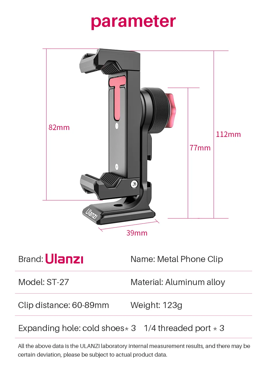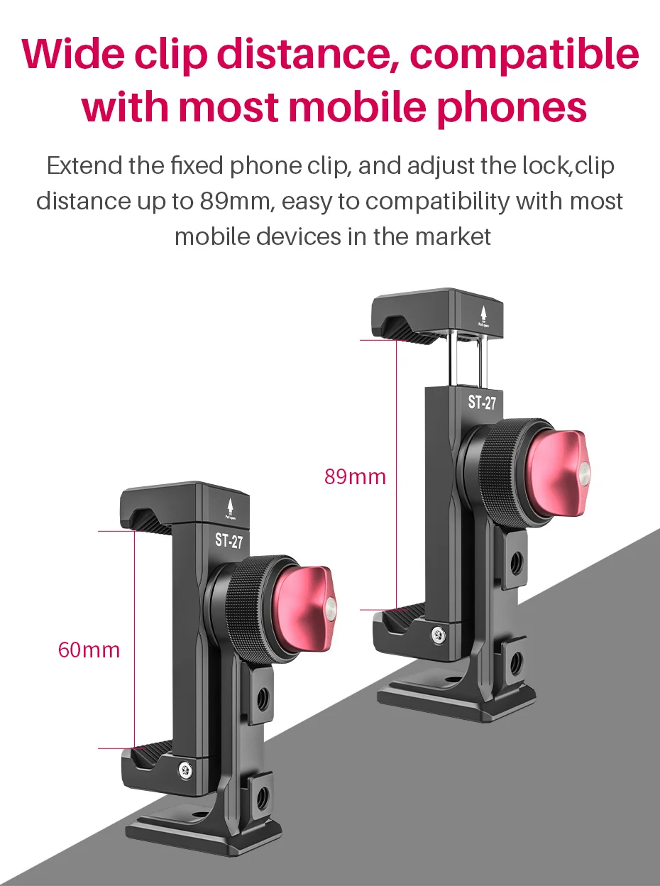 4. Диапазон зажима достигает 89 мм, совместим с большинством мобильных телефонов.