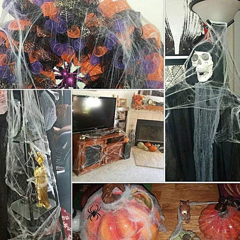 [Отлично подходит для использования в помещении и на открытом воздухе] растягивается более 1000 квадратных футов паутины можно разместить на столах, стульях, окнах, дверях или стенах, потолке или в любом месте, где вы можете подумать, в помещении или на открытом воздухе, пусть ваше использование выглядит как заброшенная кабина или ваша гостиная любит жуткий погреб.