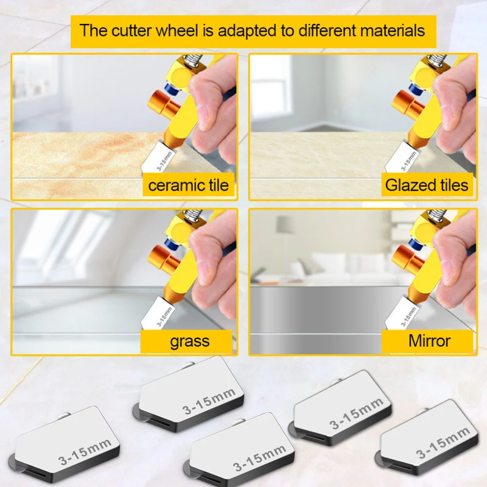 Полезно: открывающее колесо для стеклянной плитки работает с диапазоном нарезки 3-15 мм, достаточно для удовлетворения ваших ежедневных потребностей в металлизации, вы можете заказать в соответствии с вашими потребностями.