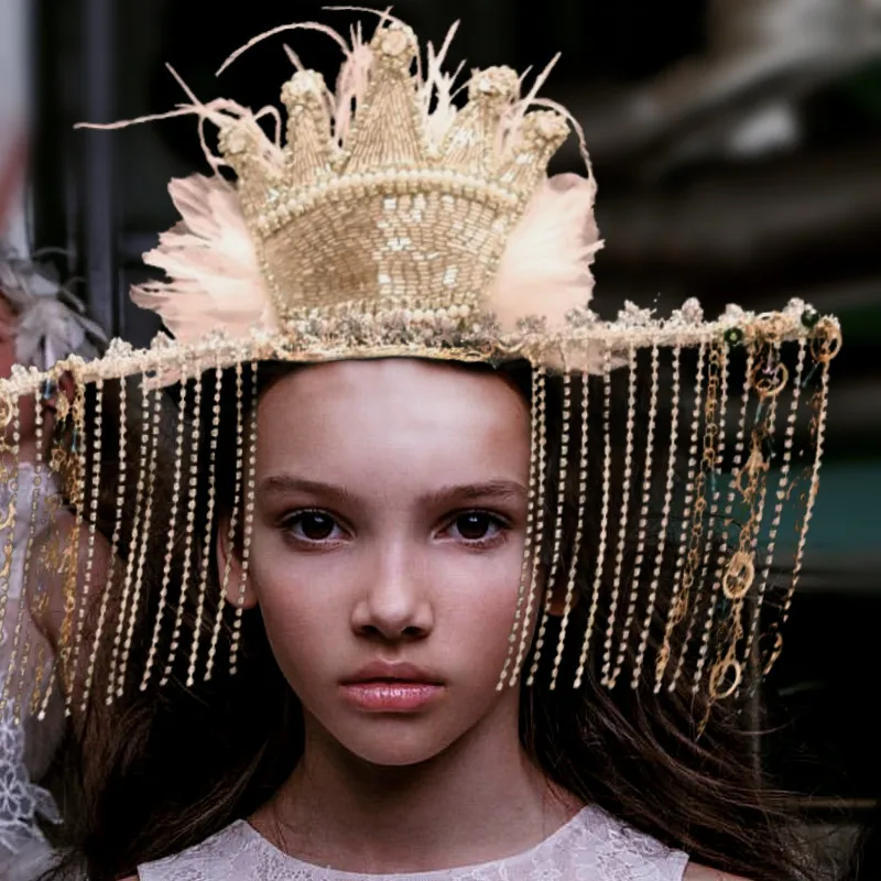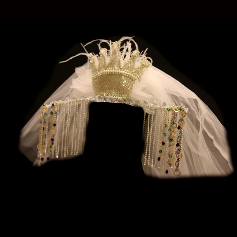 Hair Accessories Crown Fashion Show Handmade Feather Veil Princess Gold Crowns Catwalk Performance Headpiece
