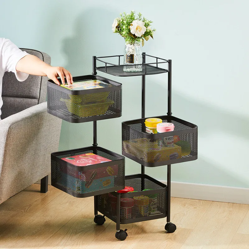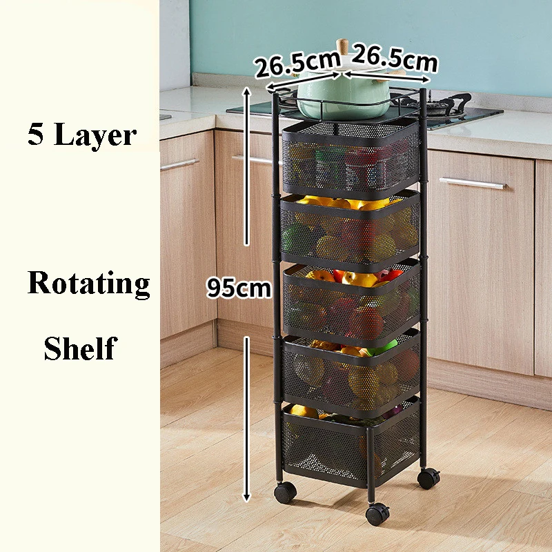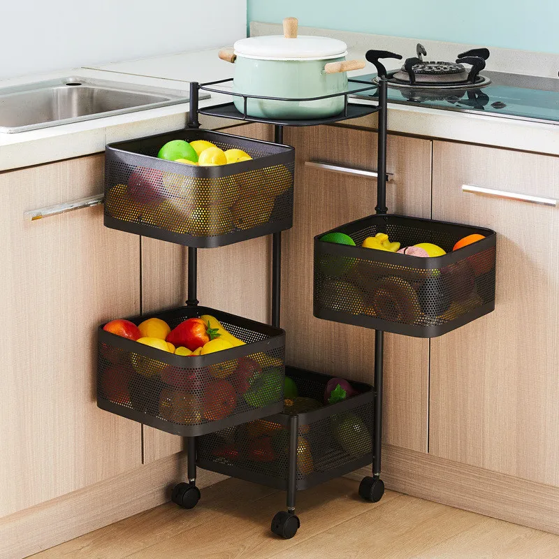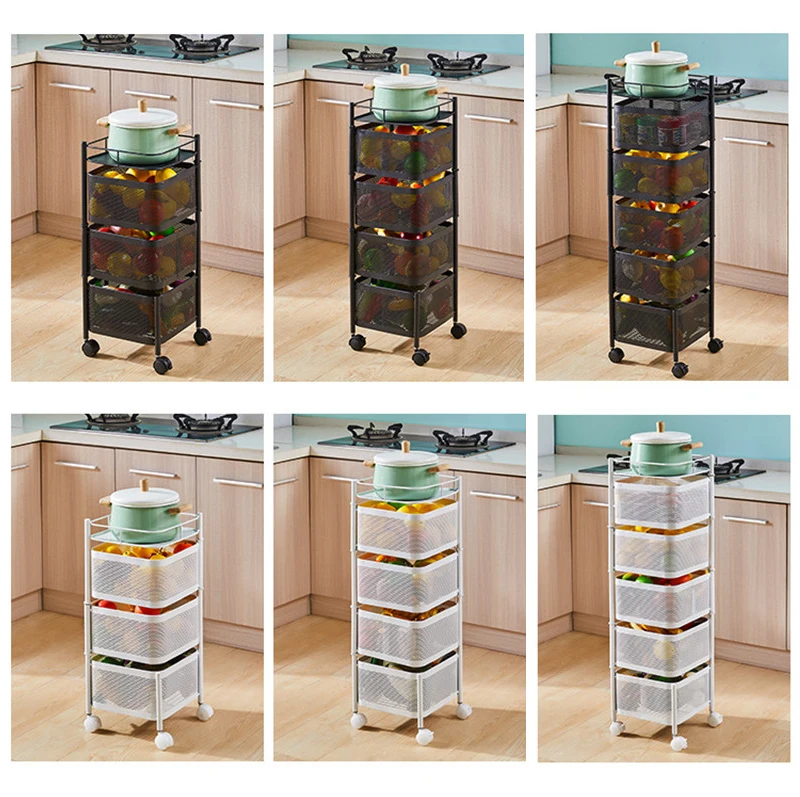 Металлическая кухонная стойка, вращающаяся многослойная стойка для хранения, корзина для фруктов, тележка для кухонной ванной комнаты