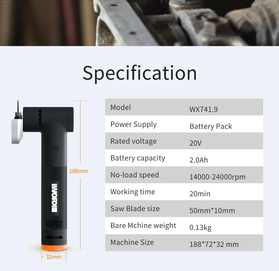 -[Мощный мощный двигатель] инструменты, питаемые бесщеточными двигателями, работают дольше на одной батарее и обеспечивают большую мощность во время работы (только WX739.9,WX741.9,WX747.9)