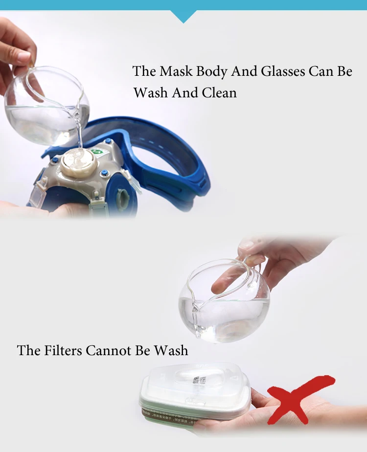 3, тщательно проверьте перед использованием, проверьте, не повреждены ли компоненты, лист клапана выдоха и лист всасывающего клапана герметичны к корпусу комбинированных картриджей, канистры картриджа фильтра свободны.