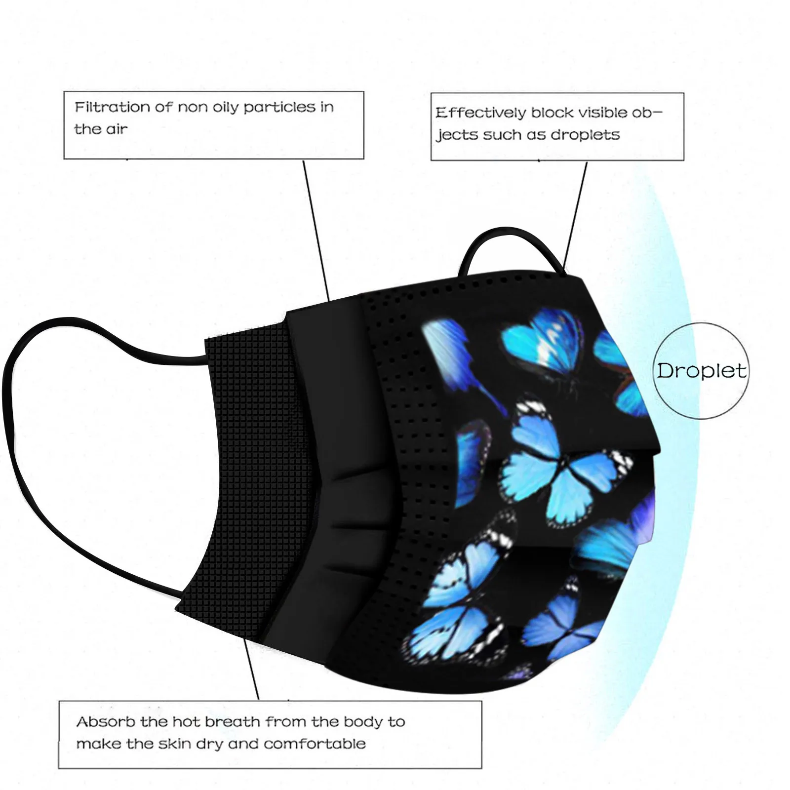 В 3 слоя Нетканая одноразовая маска изготовлена из 3 слоев нетканого материала, Безопасен и безопасен для использования. Дышащий материал и милый Узоры, которые делают его полезным и модным. Специальный 3 слоя из нетканого материала Дизайн, обеспечивает некоторую защиту от пыли, автомобильных выхлопных газов, Пыльца и т. д. эластичная Ушная петля, легко носить и не давит на уши. Маникюрный салон или любые другие области, где может потребоваться защита