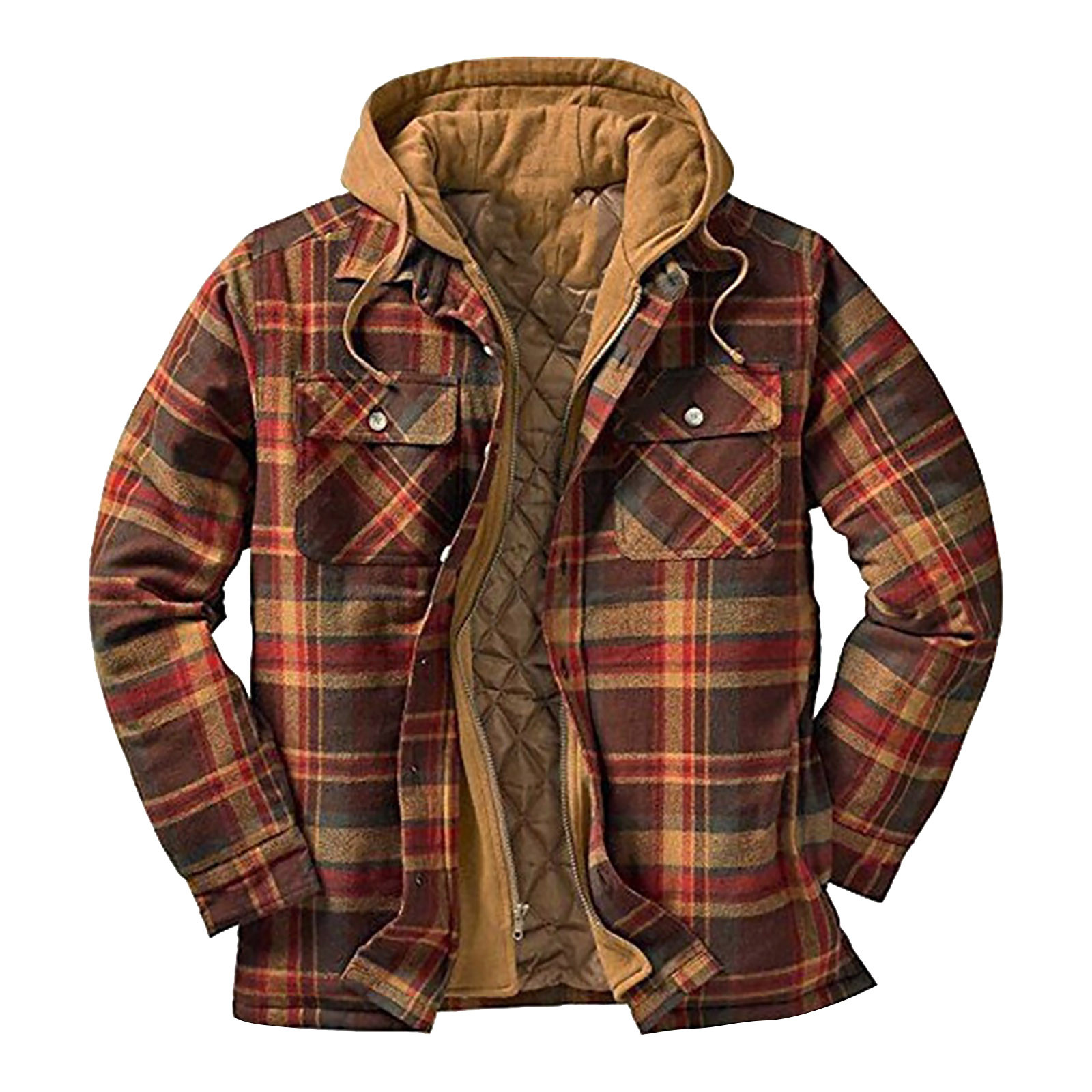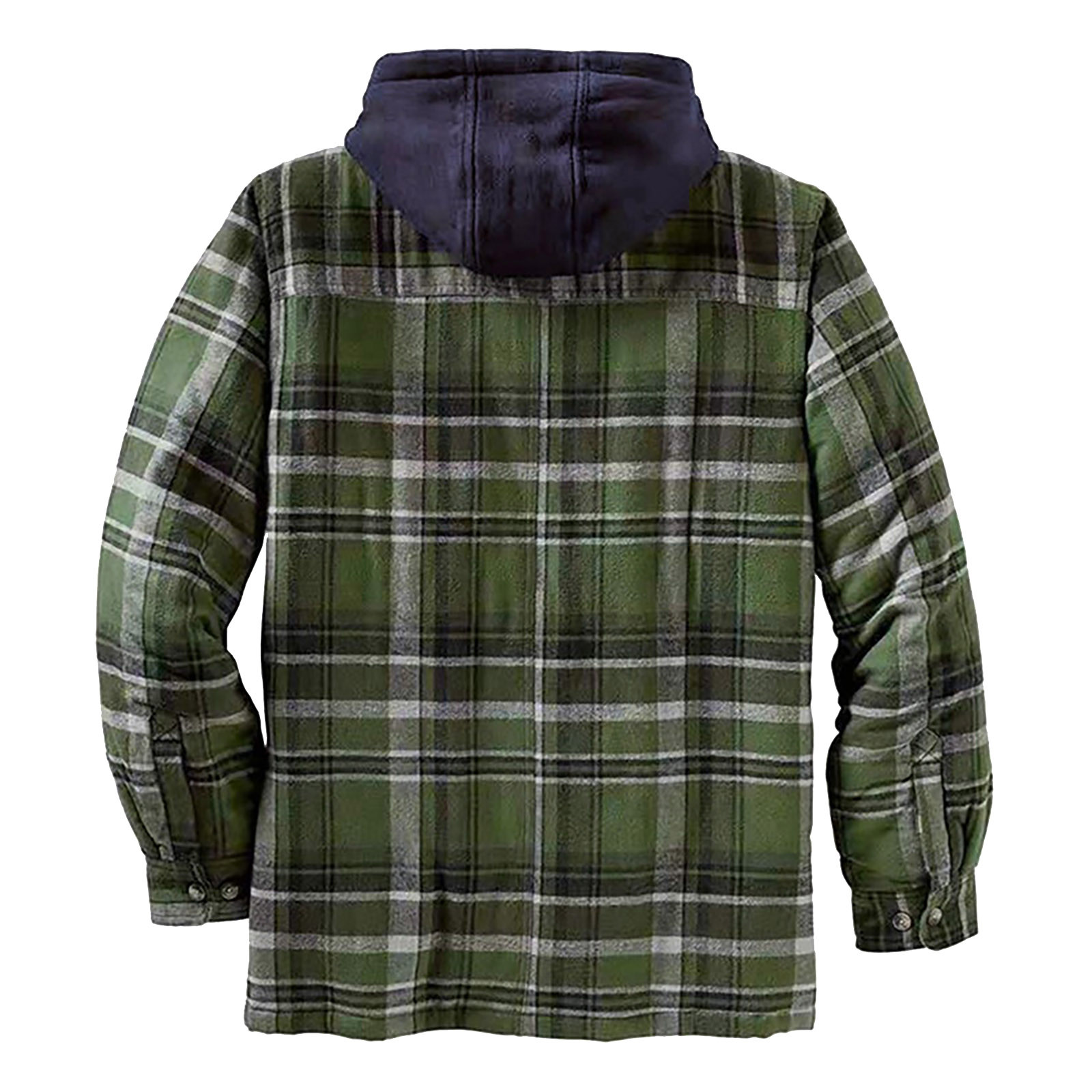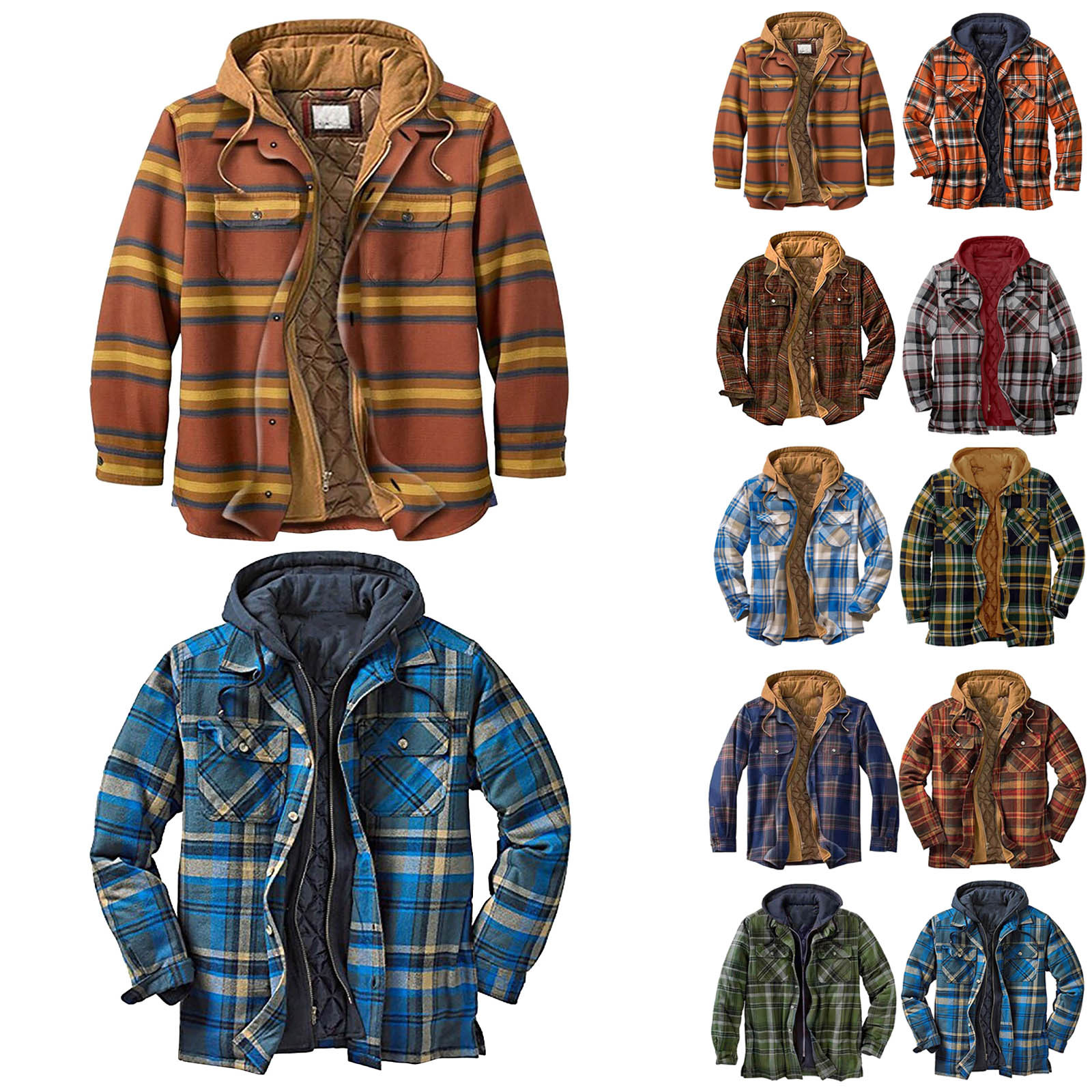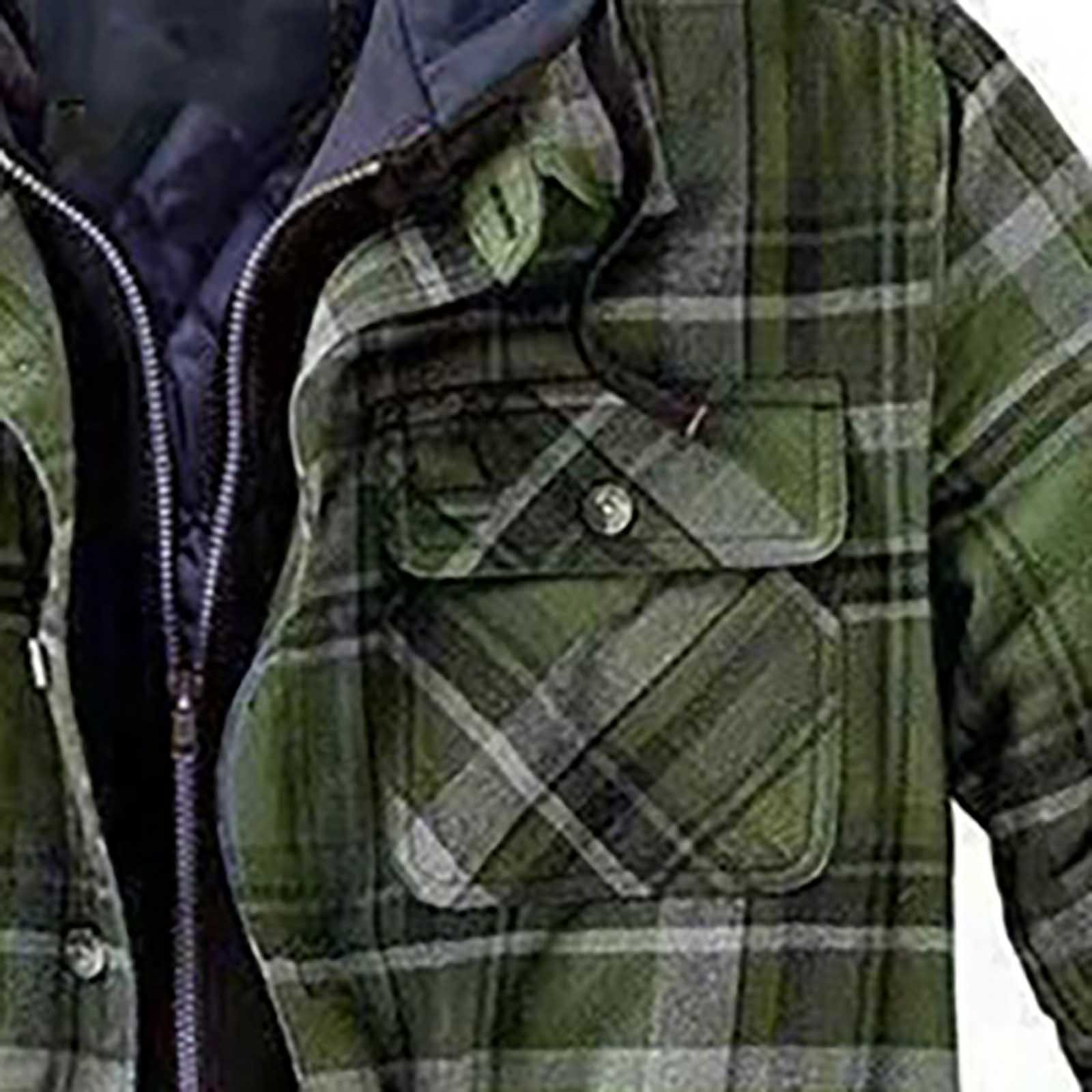 Мужская стеганая клетчатая рубашка на пуговицах с бархатом, сохраняющая тепло куртка с капюшоном