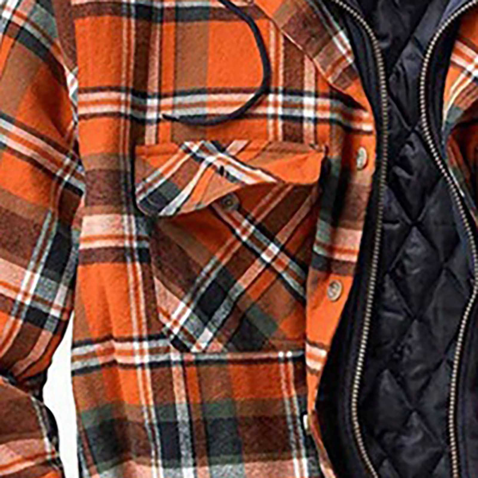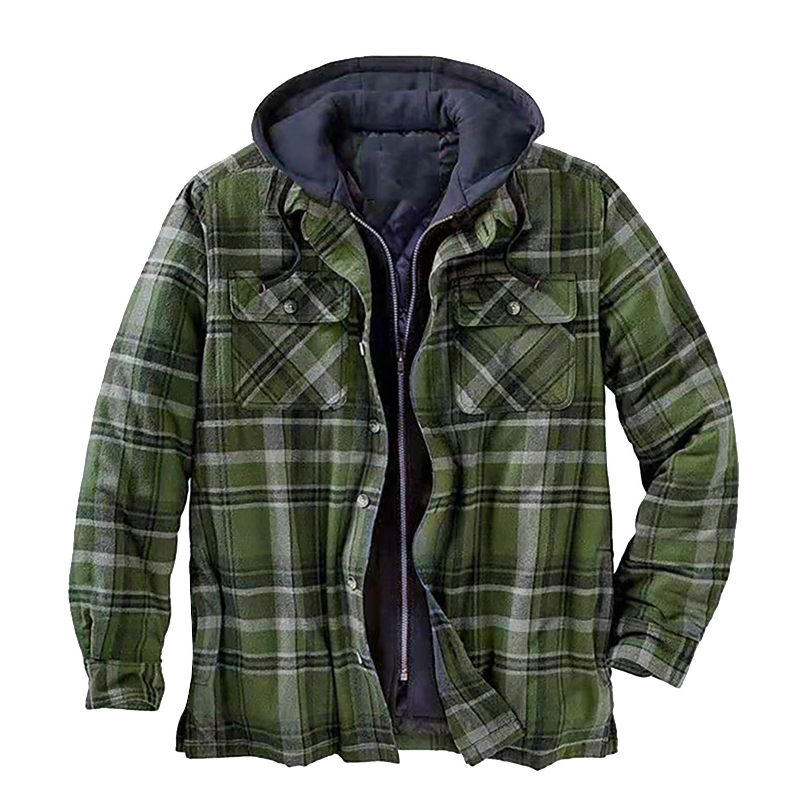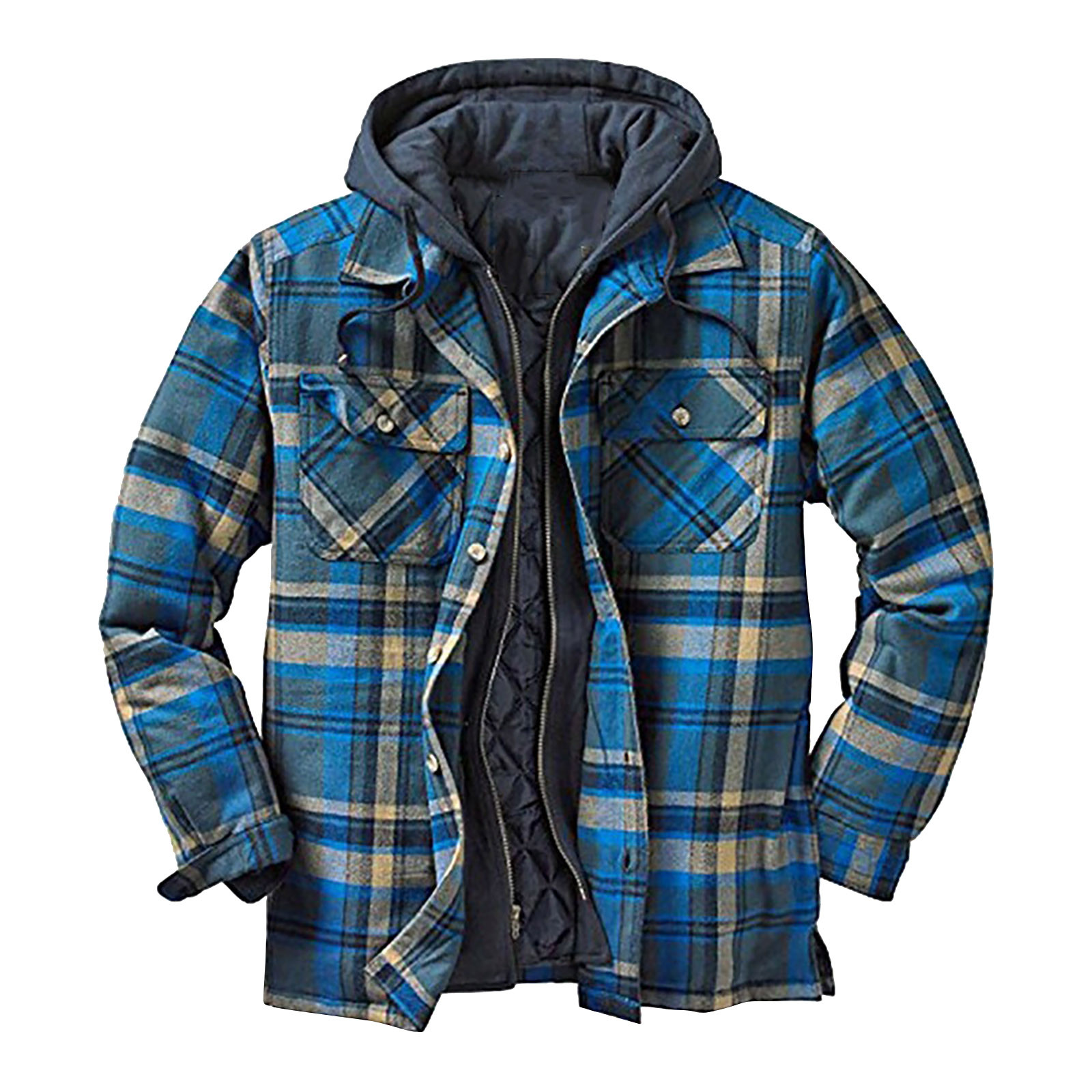 Мужская стеганая клетчатая рубашка на пуговицах с бархатом, сохраняющая тепло куртка с капюшоном