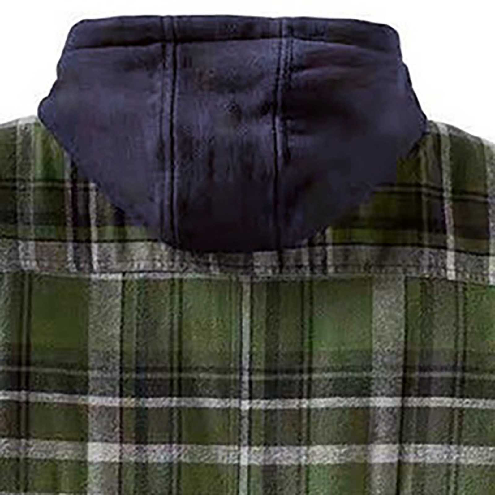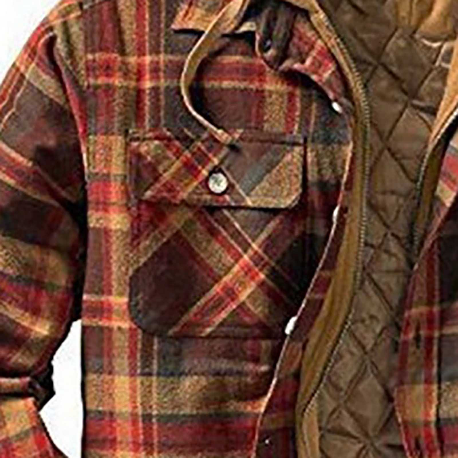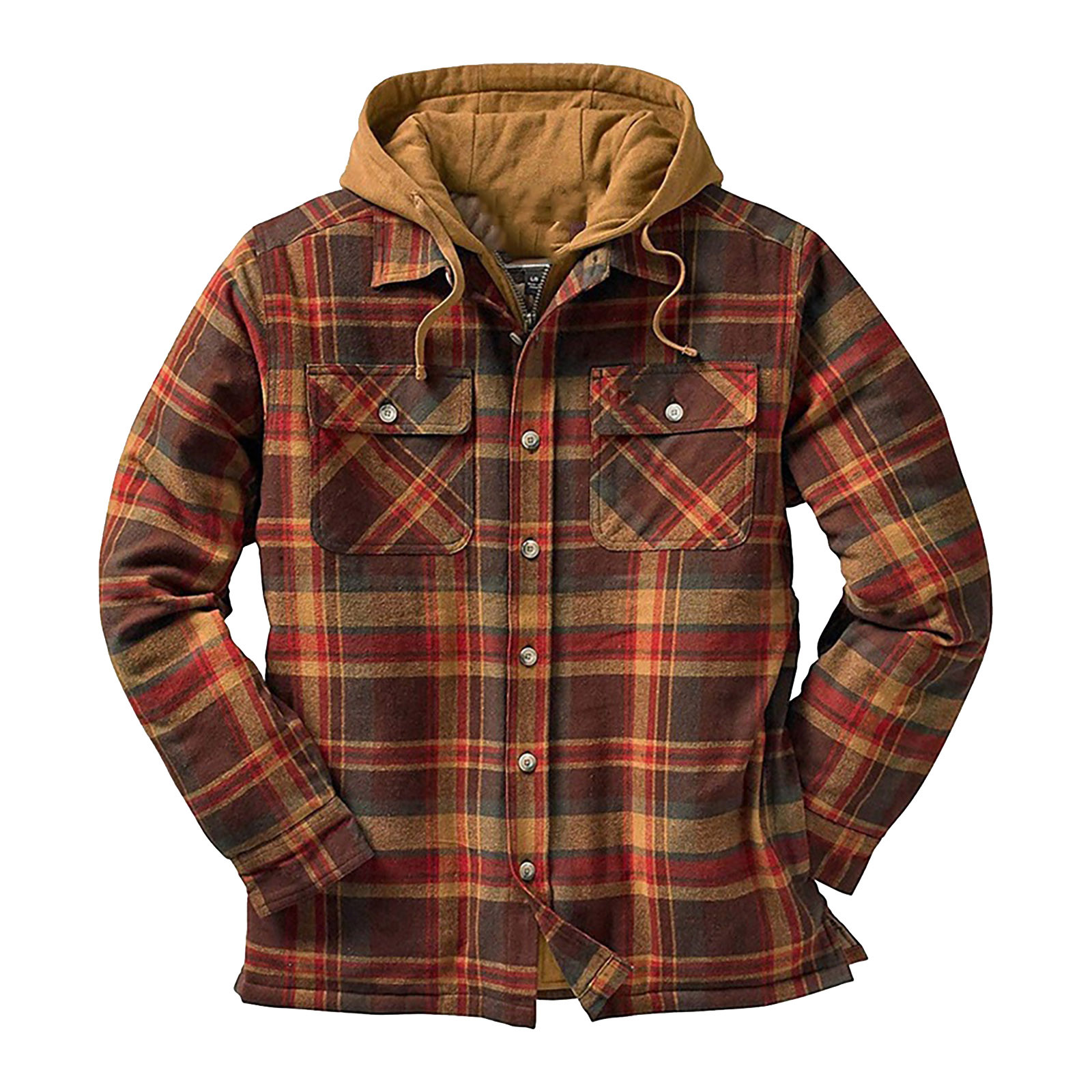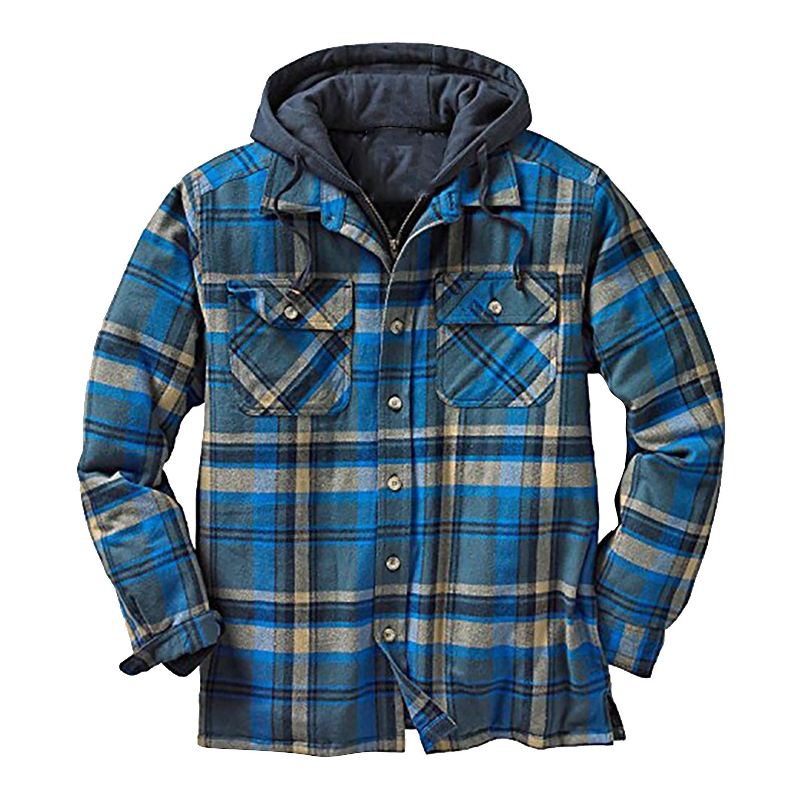 Мужская стеганая клетчатая рубашка на пуговицах с бархатом, сохраняющая тепло куртка с капюшоном