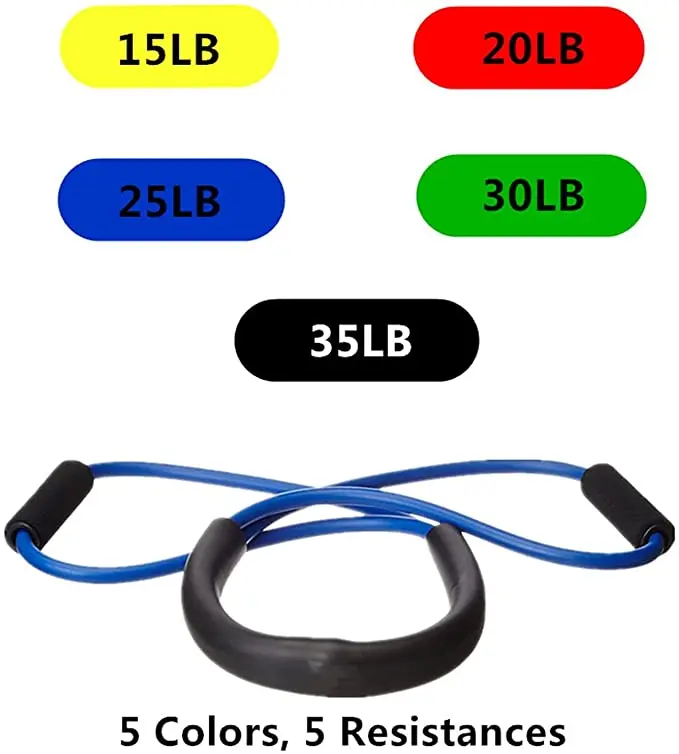 Материал: резина цвет и мощность: желтый (15 фунтов), красный (20 фунтов), синий (25 фунтов), зеленый (30 фунтов), черный (35 фунтов)