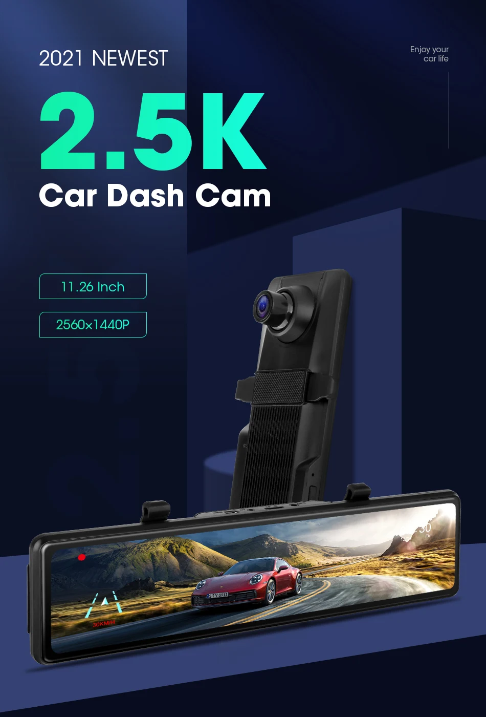Jansite 2,5 K + 1080P автомобильная камера, видеорегистратор 11,26 "заднего вида, зеркальный регистратор, GPS воспроизведение, мониторинг парковки, покадровое видео