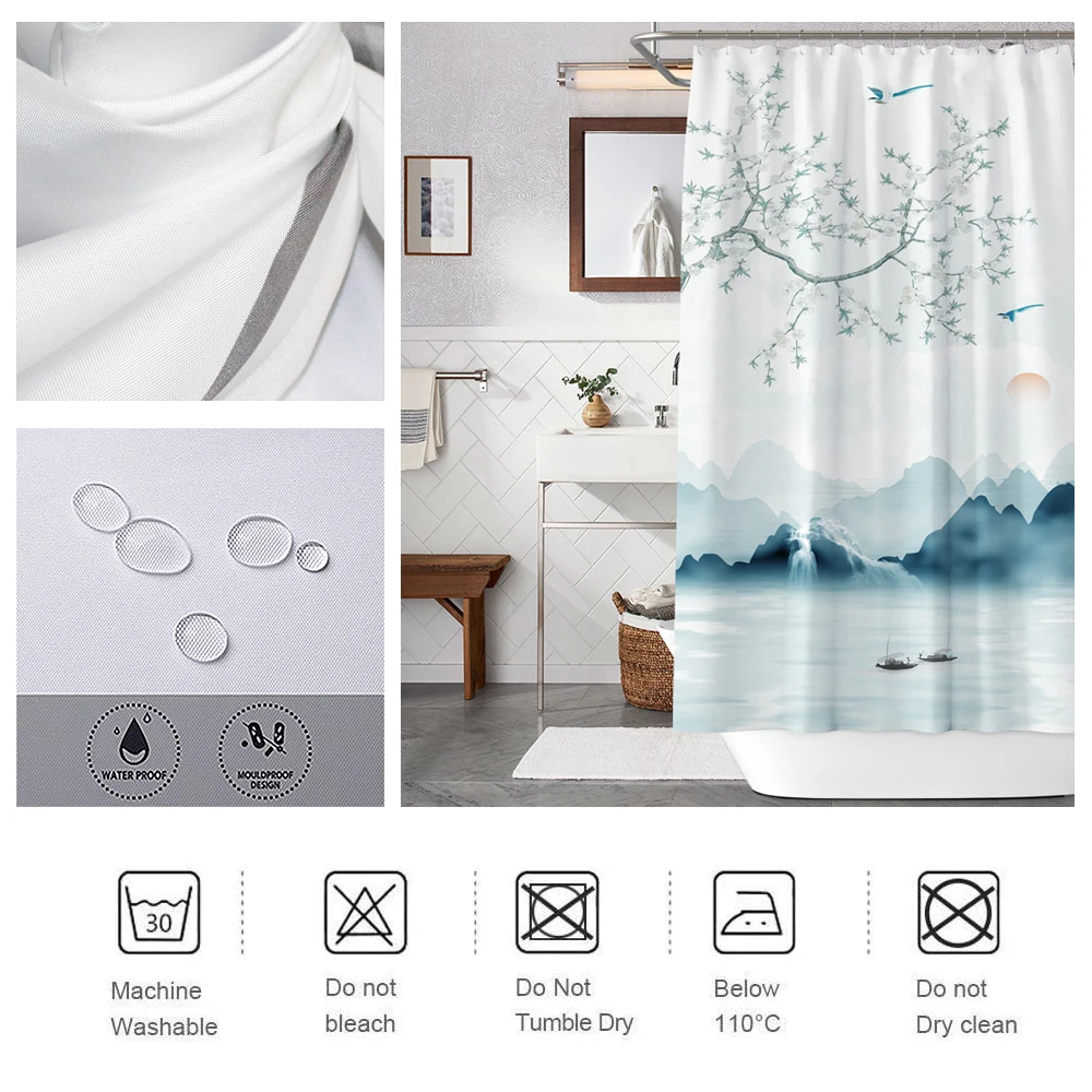 1 занавеска для душа + 12 пластиковых крючков