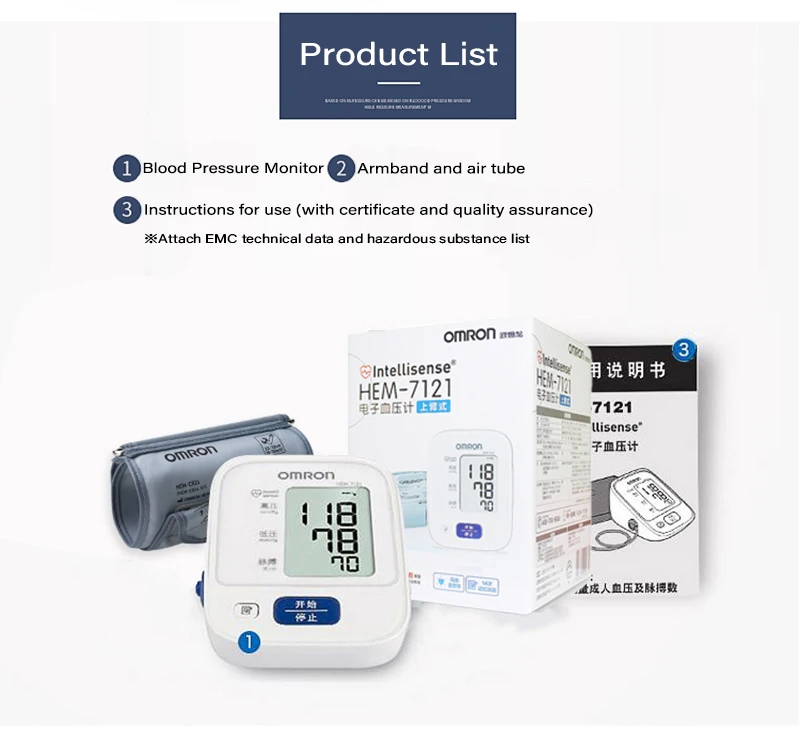 【Аксессуары 】 повязка на руку и воздушная трубка (Используйте диапазон окружности руки 220 ~ 320 мм), руководство по эксплуатации (включая гарантию продукта, список опасных веществ), сертификат соответствия, технические данные EMC