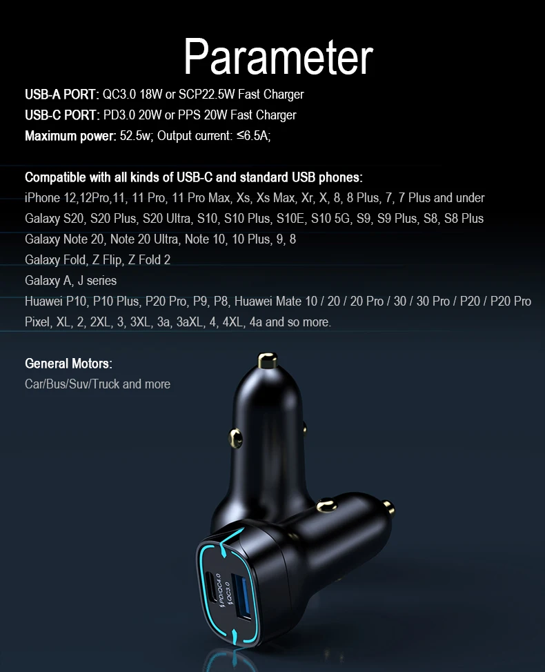 ·Универсальная совместимость-модернизированное автомобильное зарядное устройство для телефона Совместимо с большинством мобильных телефонов, таких как Apple iPhone series, Samsung Galaxy series, Google Pixel series, LG, Moto, HTC и многое другое.