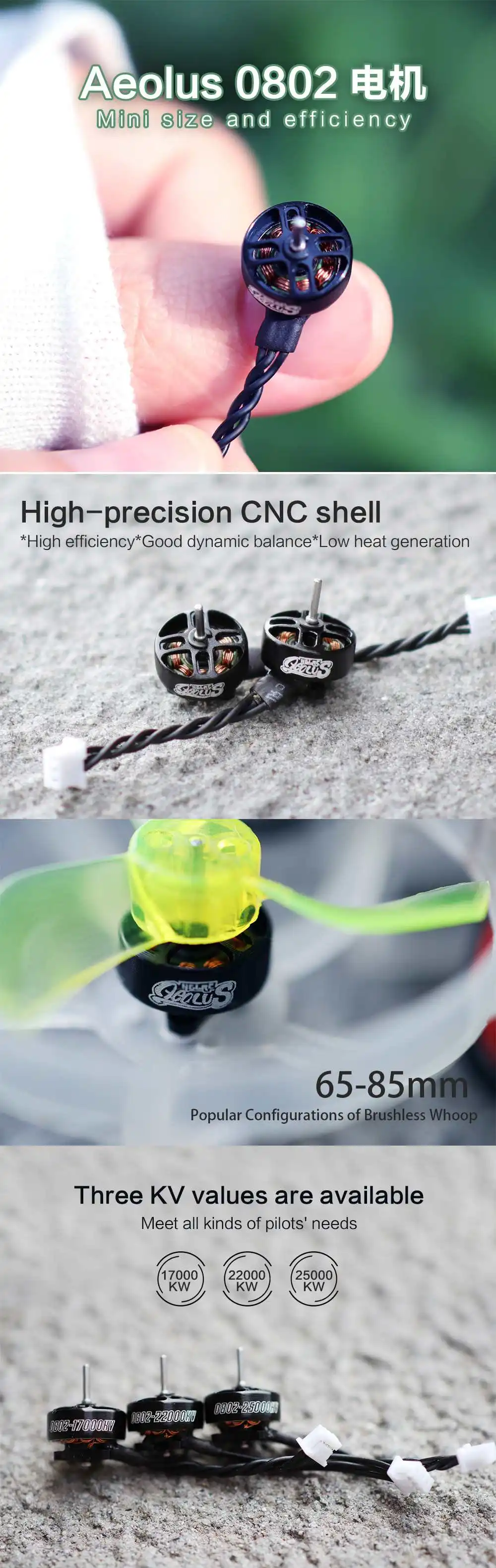 -HGLRC Aeolus 0802 бесщеточный двигатель, с интегрированным дизайном ротора, более надежный, специально для внутреннего tinywhoops, является общей конфигурацией 65-75 мм бесщеточный Whoop