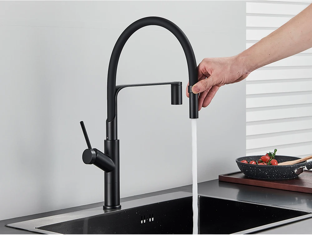 POIQIHY матовый черный кухонный кран потяните вниз Опрыскиватель хром одной ручкой высокой дуги медный кухонный кран для раковины универсальный смеситель для труб