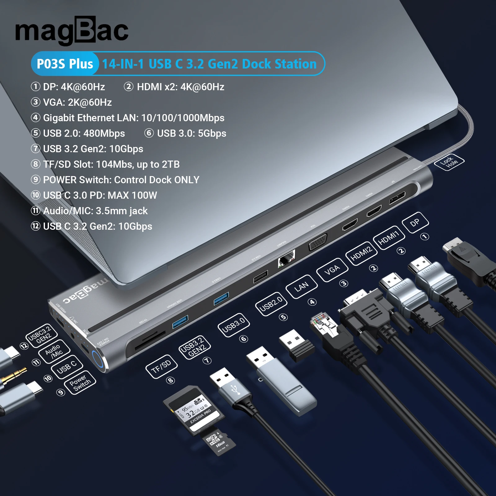 Док-станция USB C P03S Plus 14 в 1: