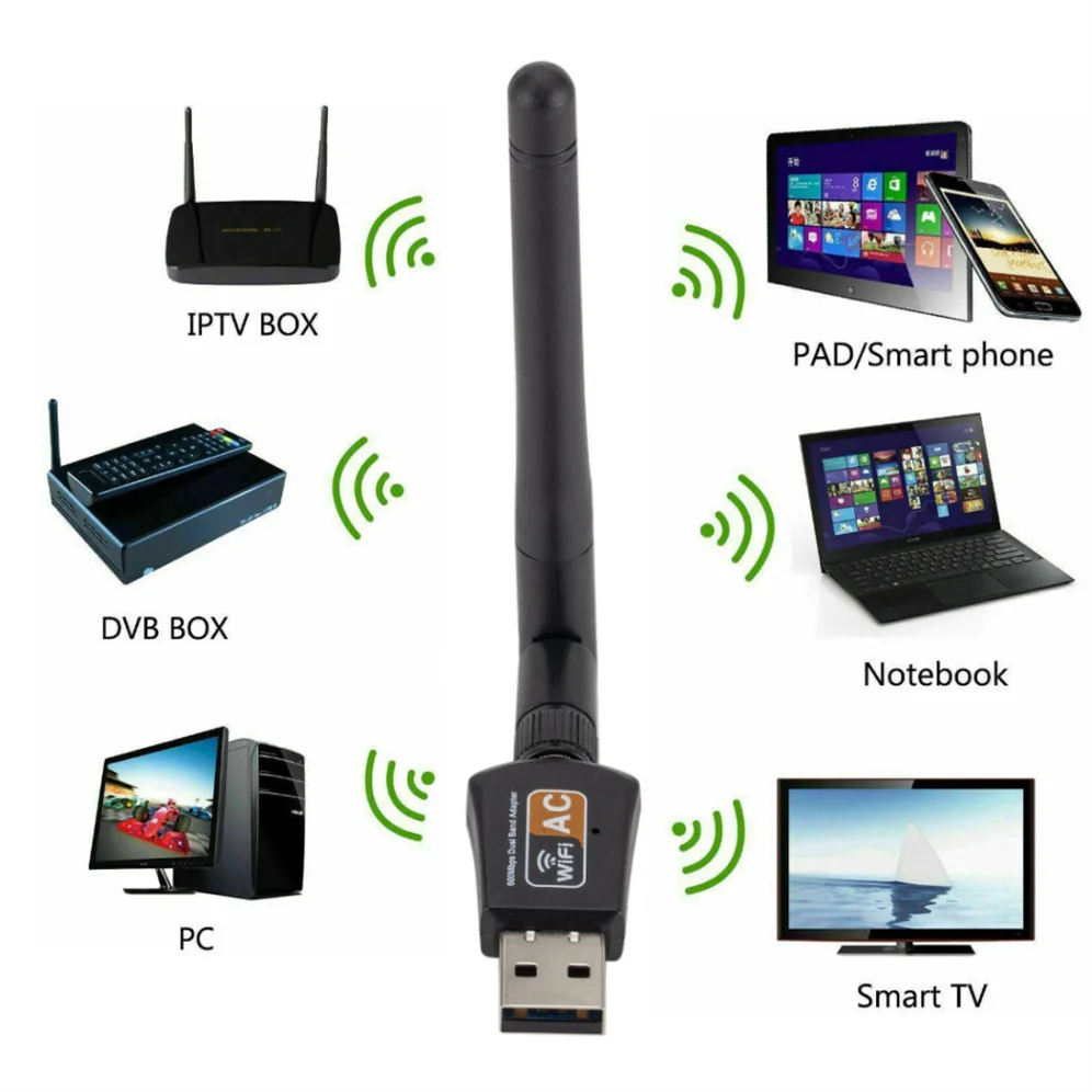 1x Wi-Fi 5 ГГц/2,4 ГГц Беспроводной антенный адаптер