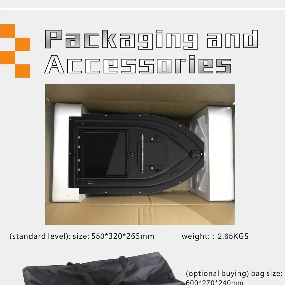 Версия GPS: принятие глобального GPS позиционирования, может установить четыре точки приманки и эффективно привлечь рыбу. Когда корпус выходит из строя или аккумулятор не работает, он автоматически вернется, чтобы ваша любимая лодка была в безопасности.