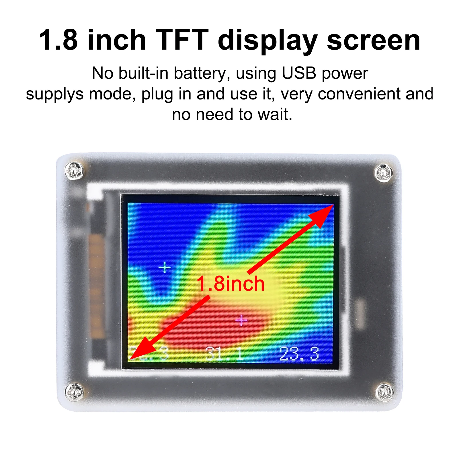 1.8 inch TFT screen resolution is 160*120, the screen shows the highest temperature, the lowest temperature, the center point.
