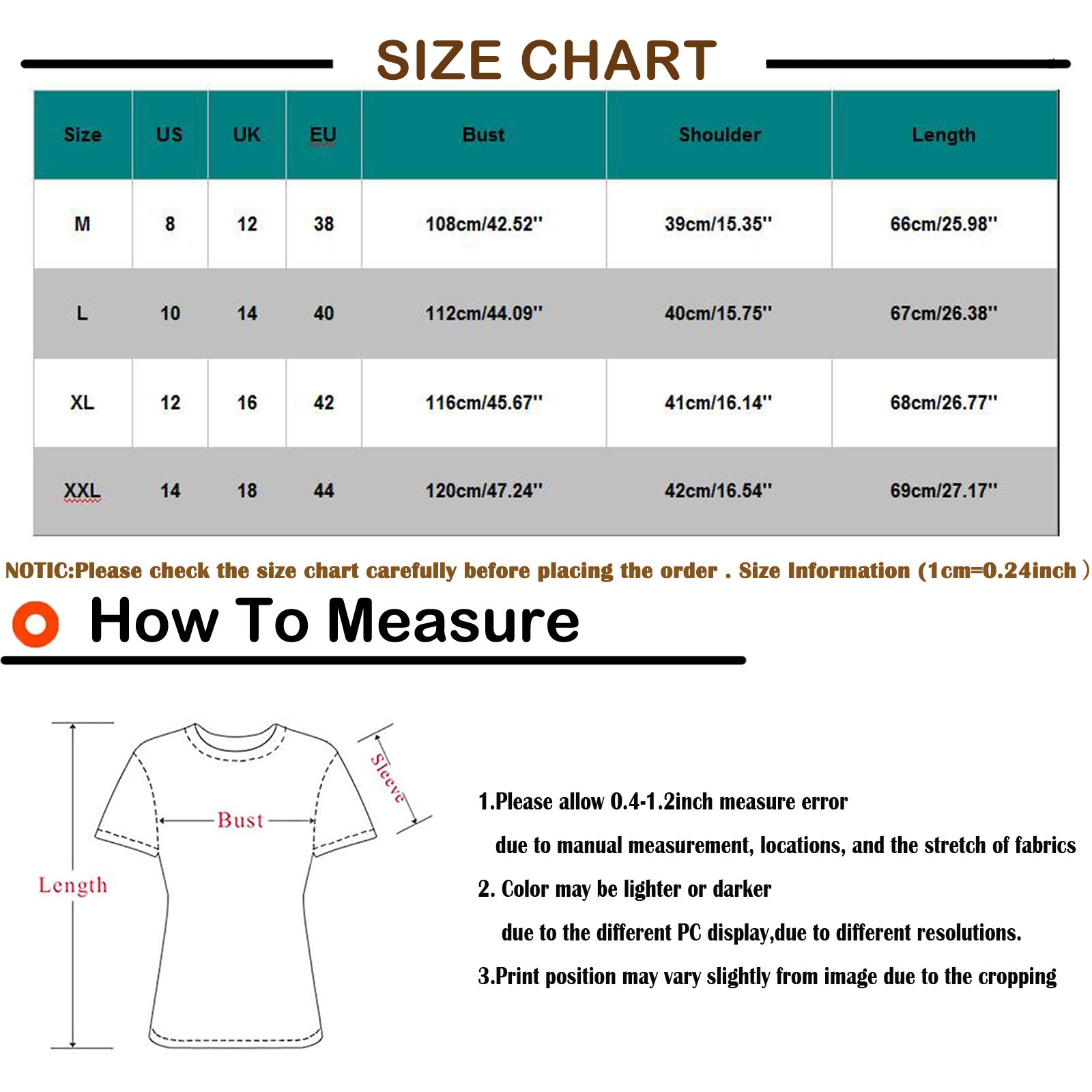 Размеры США Великобритания ЕС Бюст Плечо Длина М 8 12 38 108 см/42,52'' 39 см/15,35'' 66 см/25,98'' L 10 14 40 112 см/44,09'' 40 см/15,75'' 67 см/26,38'' XL 12 16 42 116 см/45,67'' 41 см/16,14'' 68 см/26,77'' XXL 14 18 44 120 см/47,24'' 42 см/16,54'' 69 см/27,17''