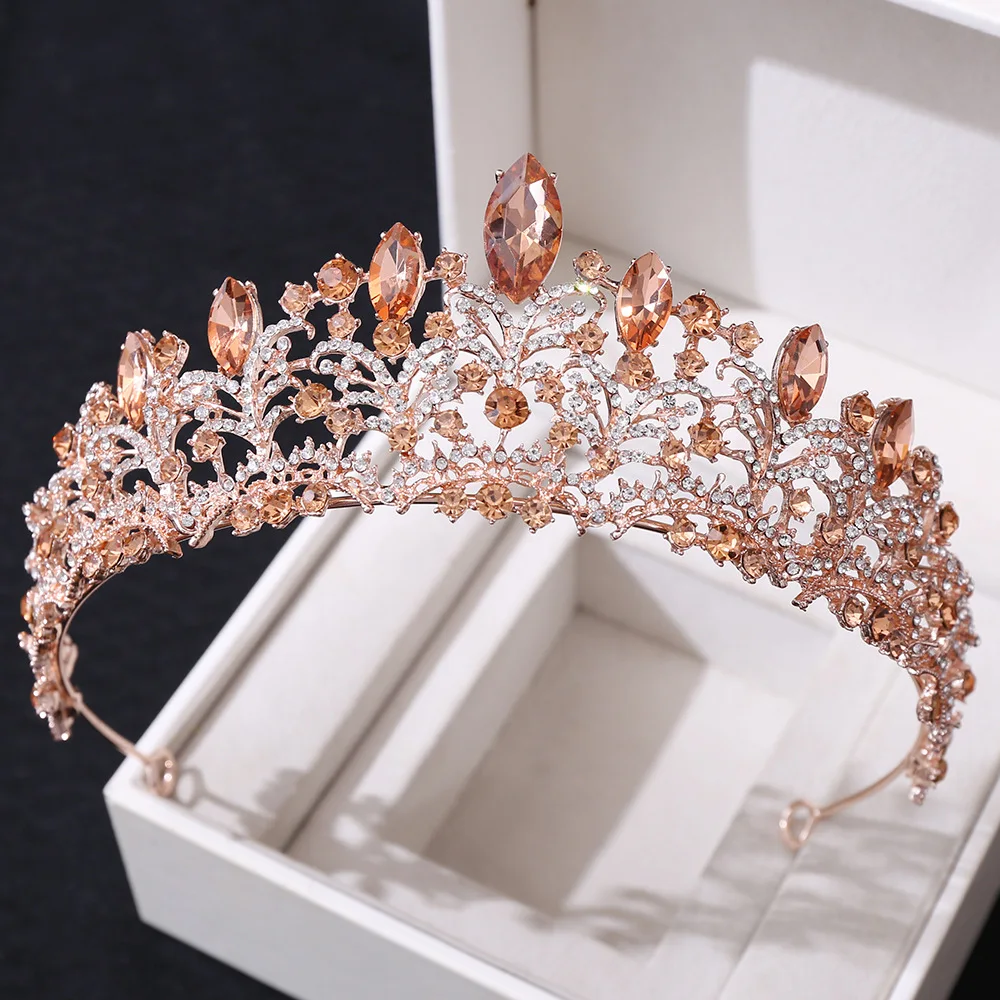 Барокко Ретро розовое золото персиковый хрусталь свадебная корона-Тиара Стразы Театрализованная диадема вуаль тиара головная повязка свадебные аксессуары для волос