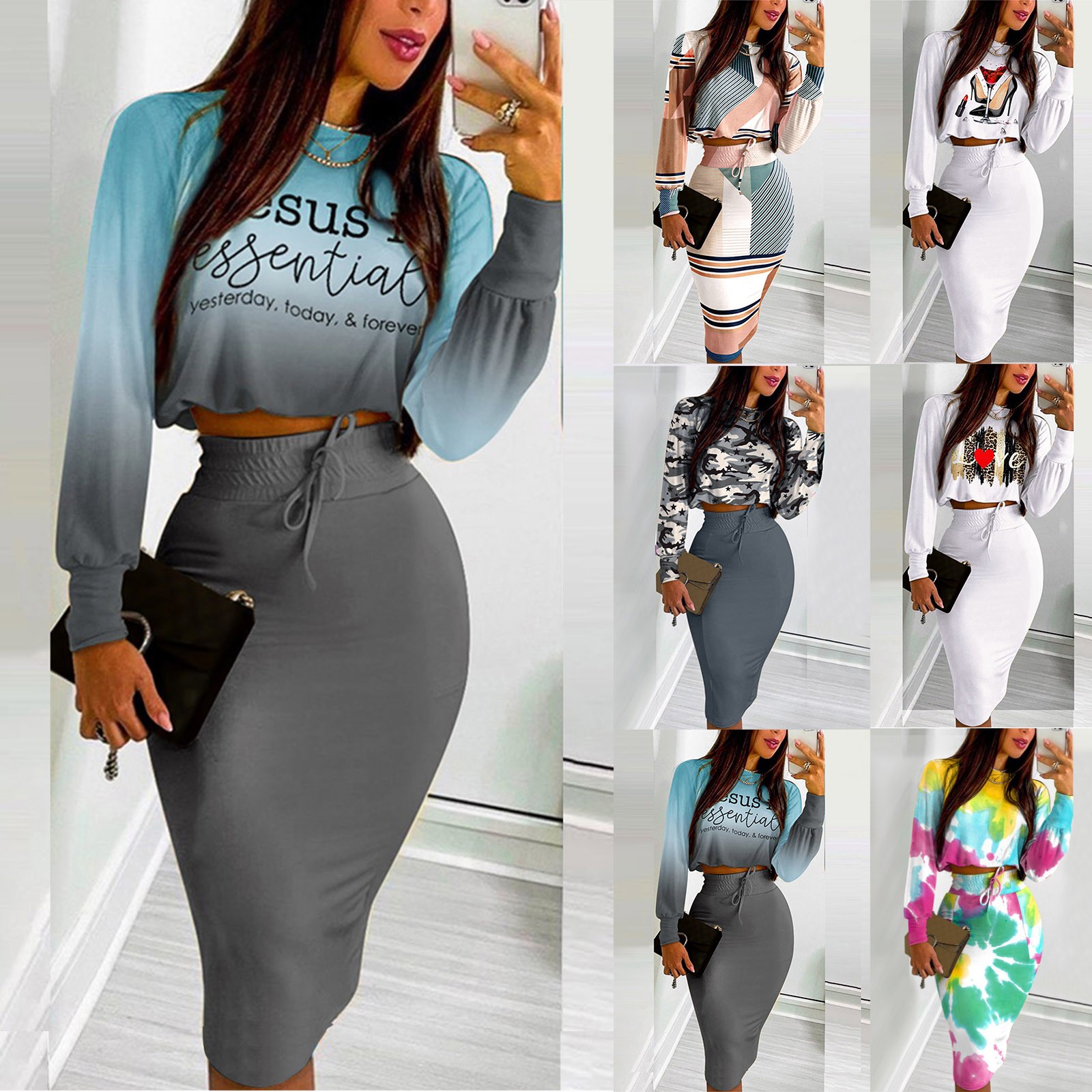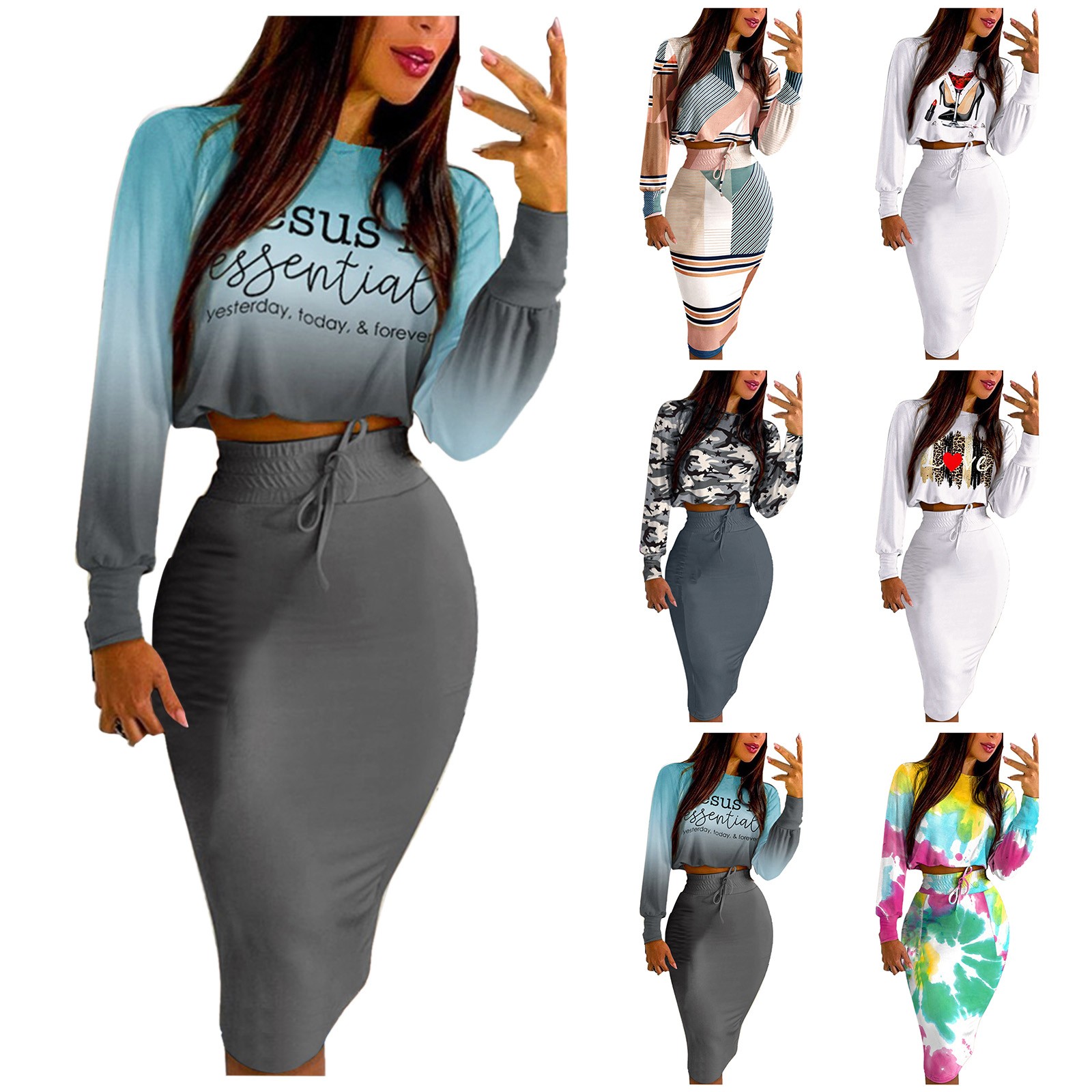 Женский топ с длинными рукавами и клетчатая юбка-рубашка с принтом