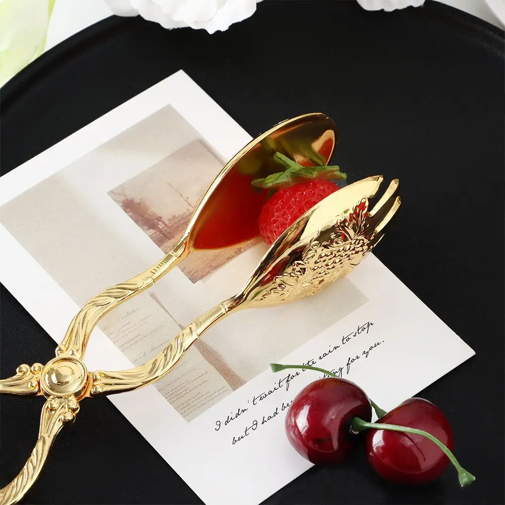 Еда Tong позолоченный закуска торт клип Салат Хлеб кондитерский зажим для выпечки барбекю инструмент фруктовый салат, торт клип.