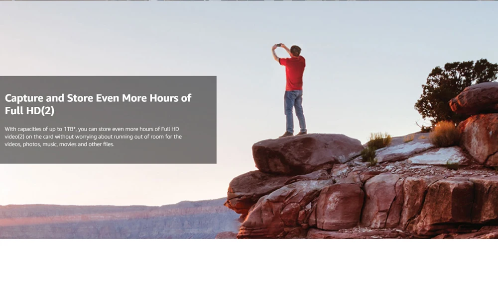 С емкостью до 400 ГБ (32-1 ТБ), вы можете хранить еще больше часов видео Full HD на карте, не беспокоясь о том, что у вас нет места для видео, фотографии, музыка, фильмы и другие файлы.