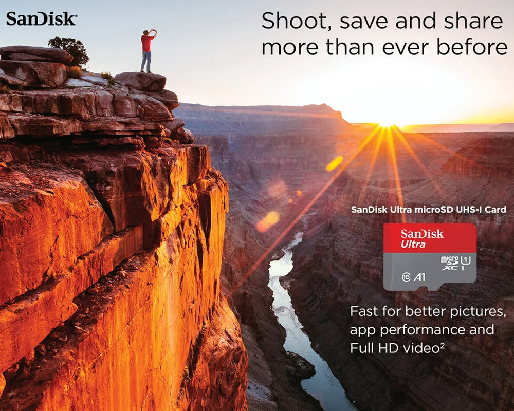 Оценка A1, Карта SanDisk Ultra microSD оптимизирована для приложений, обеспечивая более быстрое приложение lauch и производительность лучшего опыта работы со смартфоном