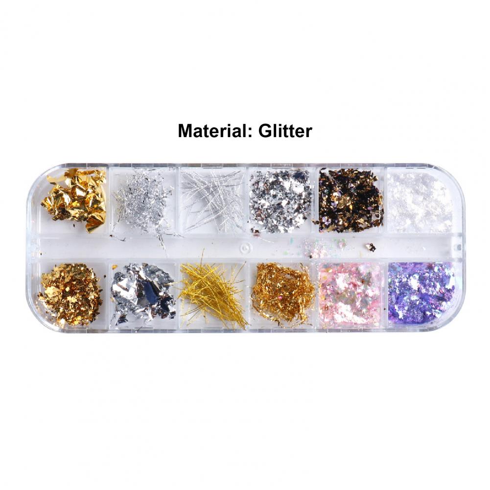 Эта блестка для ногтей имеет 12 сеток с блестками разных цветов, что позволяет быстро выбрать цвет, который вы хотите, и предотвратить смешивание блесток.